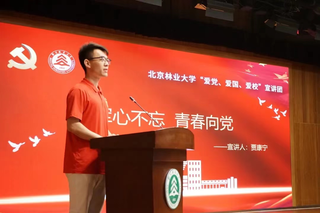 北京林业大学 2021-2022 年“五四青年标兵”贾康宁分享了自己学习习近平总书记在庆祝中国共产主义青团成立100周年大会上的重要讲话的感悟。在谈及自己被评选为“五四青年标兵”时,贾康宁认为标兵即模范,这不光是一种荣誉,更是一种责任。“‘人生万事须自为,跬步江山即寥廓。’ 作为一名新时代的北林青年,要时刻谨记‘替山河装成锦绣,把国土绘成丹青’的使命,牢记‘绿水青山就是金山银山’的生态理念,让青春在党和人民最需要的地方绚丽绽放。”