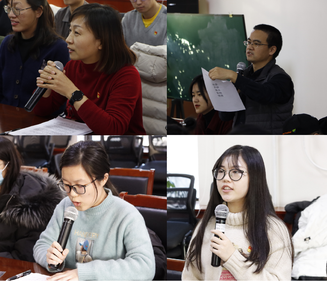 在交流环节,动微学科教工党支部翁强从教师角度,谈了如何从党的百年奋斗史中汲取经验,并将其融入人才培养工作中;动微学科教工党支部书记何晓青从决议解读,中外角度看待中国民主制度的优越性以及如何讲好中国故事进行的分享;细胞学科教工党支部宣传委员杜亮以“改变、开辟、展示、影响、锻造”为关键词表达了对党百年历史的深刻领悟;细胞学科党支部书记荆艳萍围绕十大历史经验之一“坚持独立自主”,结合实际工作,谈了科技工作独立自主、自立自强的重要性。硕农产微生物19党支部的张国红从青年学生的角度,谈了对于党的历次历史决议及重要意义的理解,李贝贝的发言从决议的学习领悟中更加明确了青年学生未来努力的方向。