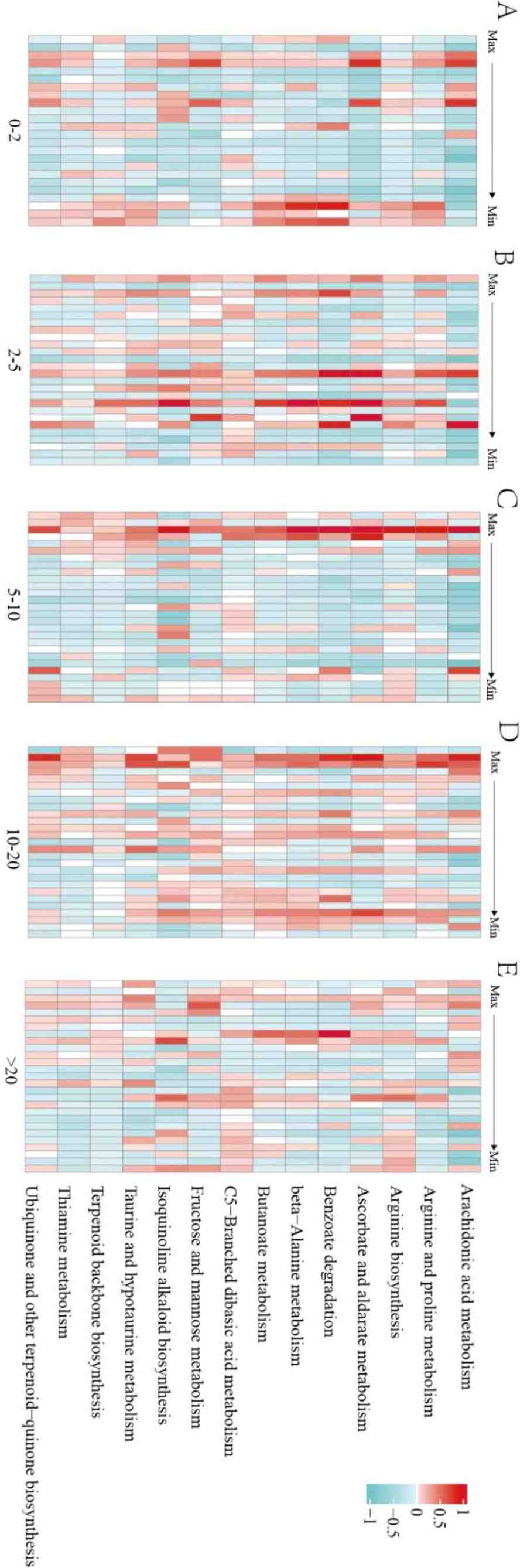 土壤盐渍化是土壤退化的一种最严重的形式,是土壤荒漠化的主要催化剂。胡杨,以其卓越的耐盐碱能力而闻名,其根际微生物组的独特性被认为对逆境适应性具有重要贡献。在胁迫环境和营养匮乏的条件下,植物能够招募有益微生物以促进其生长。研究发现,盐碱胁迫显著影响胡杨根际微生物组的多样性和功能:盐碱胁迫升高增加了细菌特化种的α多样性,同时降低了细菌泛化种的α多样性。盐碱胁迫还改变了胡杨根际细菌特化种的群落结构和组装机制,并使微生物网络的复杂性随盐度升高而增加。更重要的是盐碱胁迫下存在功能补偿机制,即在高盐条件下(5-20g/kg),ASV中抗逆相关代谢功能(如抗坏血酸代谢、花生四烯酸代谢、萜类生物合成等等)的重要性上升,细菌特化种在其中发挥了重要作用。