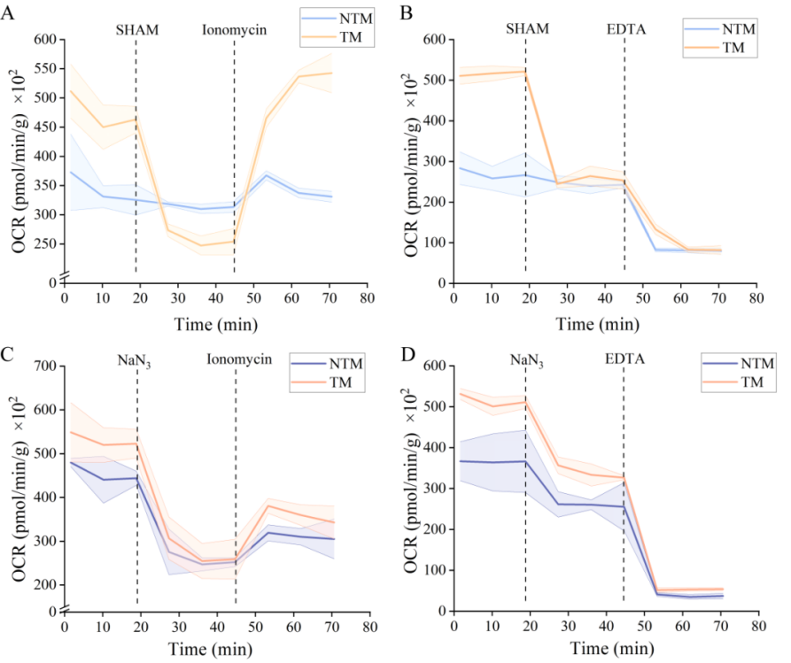 图2 钙离子促进线粒体呼吸并可实现呼吸抑制逆转