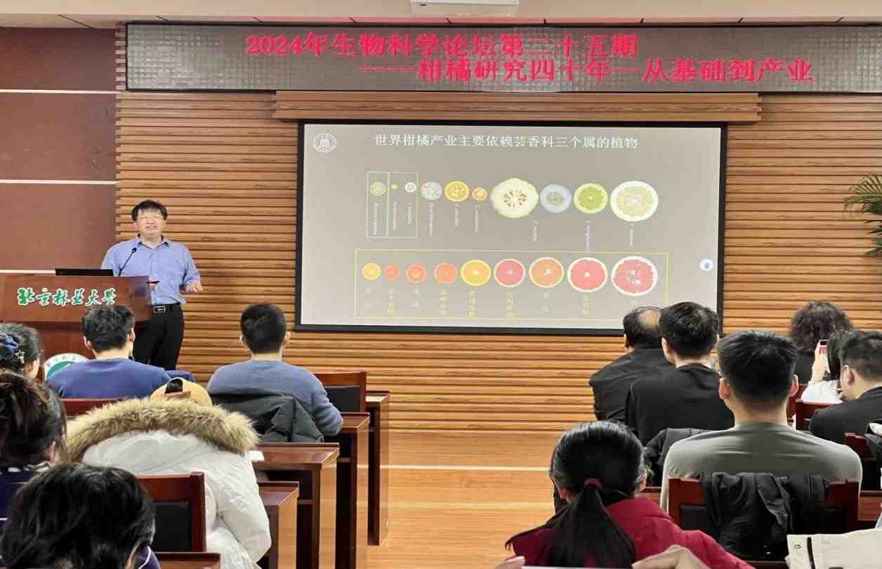 邓秀新院士聚焦“柑橘研究四十年——从基础到产业”进行学术报告。他全面回顾了自己在柑橘研究领域四十年的科研和心路历程。从最初对柑橘基础生物学的探索,到在柑橘育种和产业化方面的实践,生动地讲述了科研与产业相结合的重要性。他指出,科研工作者要在逆境中坚持创新,只有不断突破,才能取得卓越的成果。邓秀新院士还分享了自己每个研究的出发点和对青年科研工作者的建议。应用研究应紧密围绕产业需求展开,以解决实际问题为导向。邓秀新院士以延长柑橘货架期、无籽柑橘育种等为例,说明了科研成果如何直接提升农产品的价值和市场竞争力。他鼓励青年人产业应用选题要从产业中来,深入一线,了解实际需求再开展研究。
