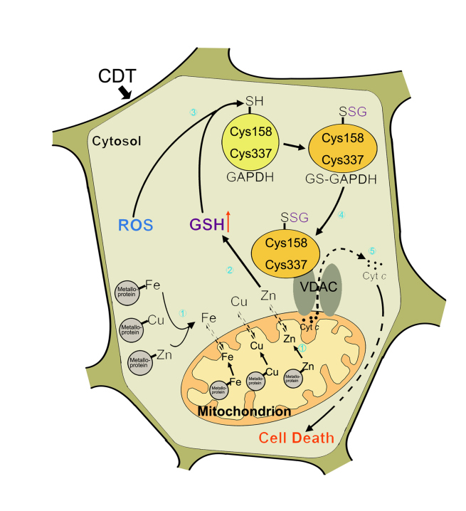 家榆又名白榆,其种子无休眠现象,发芽迅速、整齐,寿命较短,大小适中,是研究种子活力的理想材料。研究发现,家榆种子老化过程中GAPDH1的半胱氨酸位点发生谷胱甘肽化修饰,与VDAC蛋白互作后引起线粒体膜通透性转变,导致促凋亡因子释放,加速了细胞凋亡的发生。电感耦合等离子体质谱和生化方法分析表明,老化过程中游离的金属锌水平升高,引起胞内GSH含量增加,进而促进了GAPDH的谷胱甘肽化修饰。与上述结果一致的是,锌特异性螯合剂能显著延缓家榆、萝卜、辣椒和卷心菜等多种种子的老化进程。