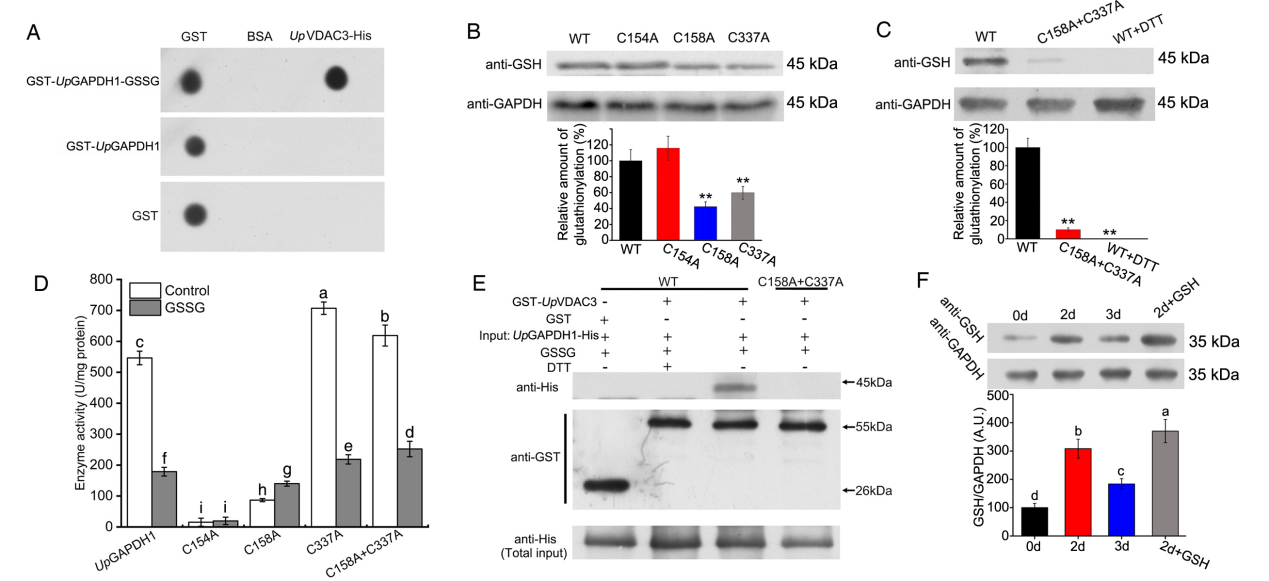 图3 GAPDH谷胱甘肽化修饰介导其与VDAC互作