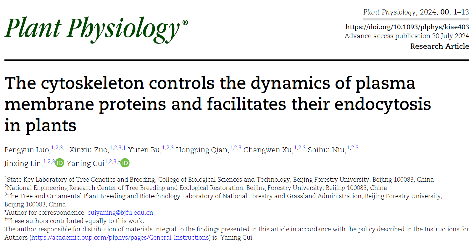近日,北京林业大学生物科学与技术学院林金星/崔亚宁团队在Plant Physiology杂志在线发表了题为“The cytoskeleton controls the dynamics of plasma membrane proteins and facilitates their endocytosis in plants”的研究论文。该研究在高时空分辨率的水平上揭示了植物细胞中不同PM蛋白的异质性,并证明了细胞骨架与PM蛋白动力学及胞吞作用之间的紧密联系,为进一步阐明植物细胞信号转导的复杂机制提供理论参考。