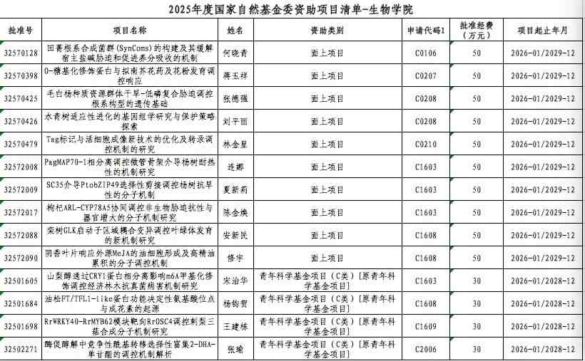 近日,国家自然科学基金委员会公布了2025年国家自然科学基金集中接收申请项目评审结果。我院获批立项14项(详见清单),直接经费总计620万元。其中,获批国家自然科学基金面上项目10项、青年科学基金项目(C类)4项,平均资助率18.42%。