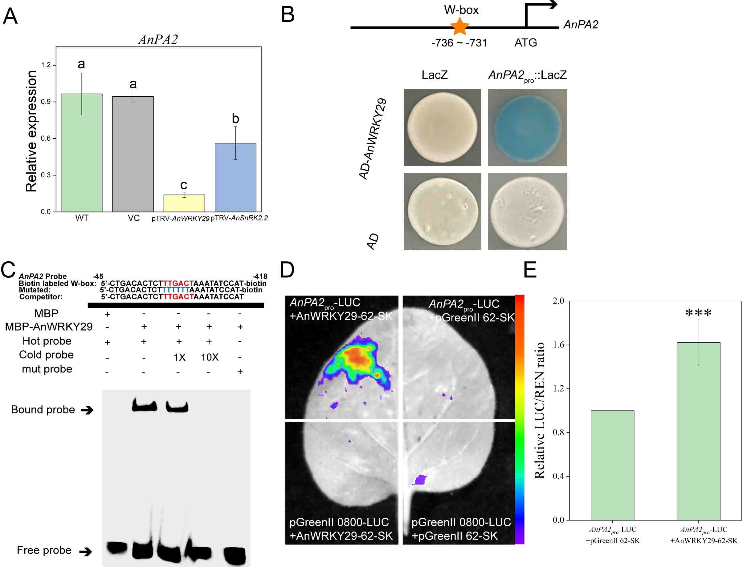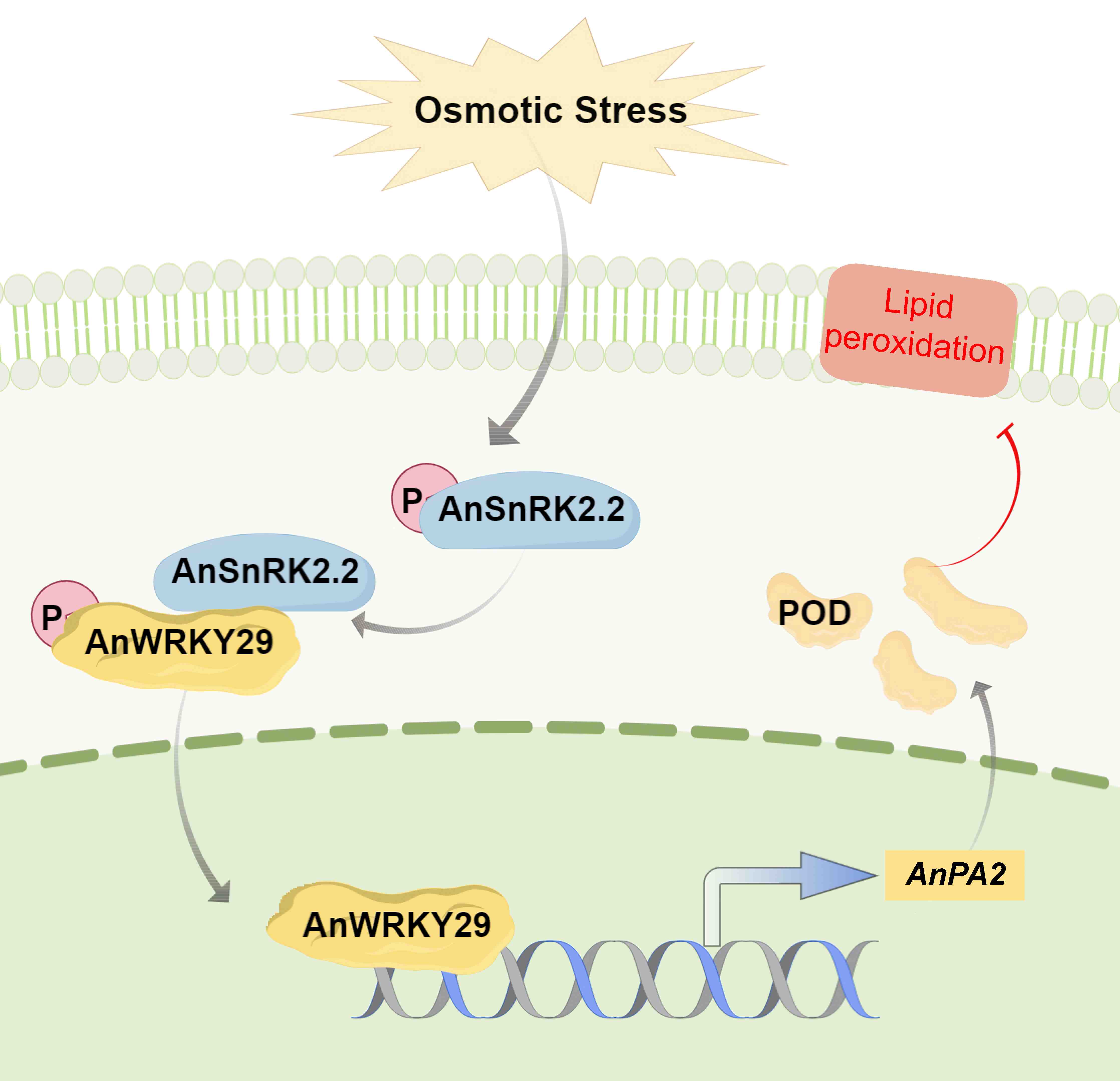 此外,由AnPA2编码的38.5 kDa过氧化物酶,属于植物过氧化物酶III类,对减轻新疆沙冬青中由H2O2诱导的膜脂过氧化起着关键作用。该研究揭示了AnWRKY29可以直接调控AnPA2的转录,从而影响过氧化物酶的合成。
