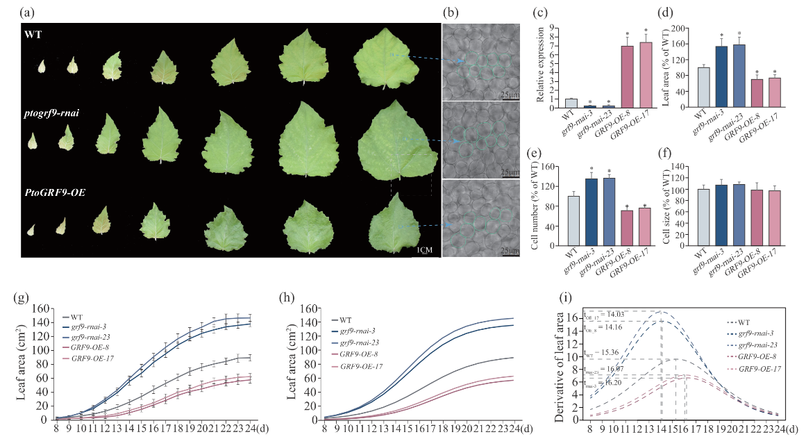 图2 PtoGRF9抑制叶片发育过程中的细胞增殖