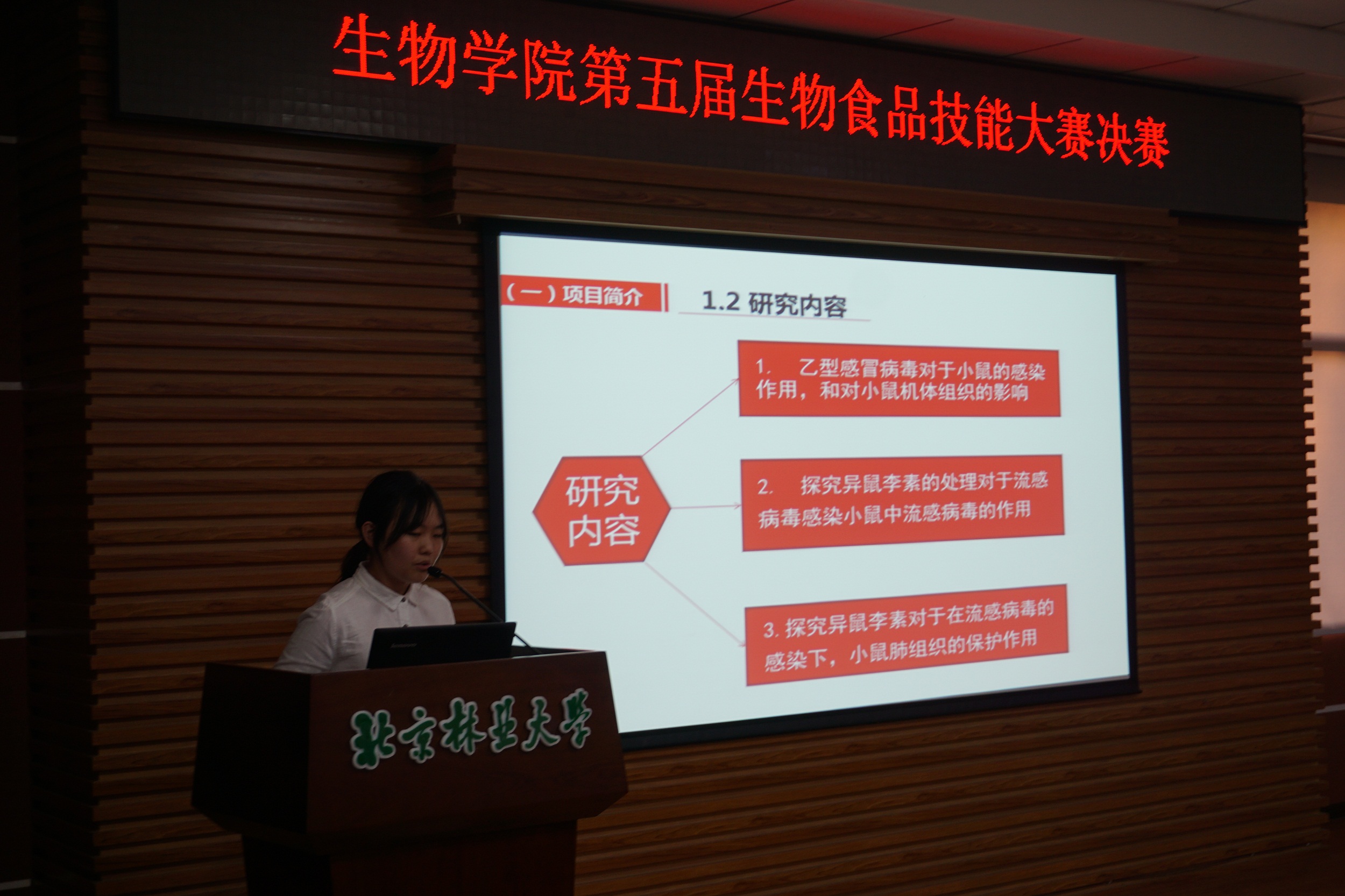 本次大赛分为生物组和食品组,生物组的同学以“预防流感病毒之我见”为主题,食品组的同学以“饮食中的流感防治”为主题分别设计了计划书,并随之进行答辩。