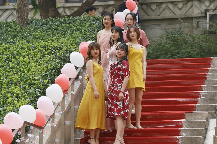 下午2:00,红毯仪式开始,全体毕业生盛装出席,依次走过红毯,执笔签名,并合影留念。
