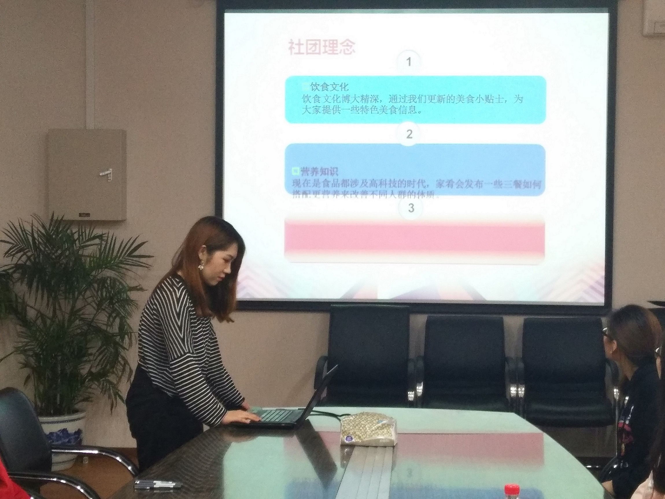首先,百奥和家肴协会负责人以PPT形式分别向各位评委老师汇报了社团的基本情况以及对本学期活动的规划。其中,家肴协会突出强调了社团的未来工作的重点和以往活动的不足与经验。百奥协会就内部建设和成果展示展开了详细的介绍。精彩的汇报展示充分体现出社团负责人的责任心以及细致的工作态度。