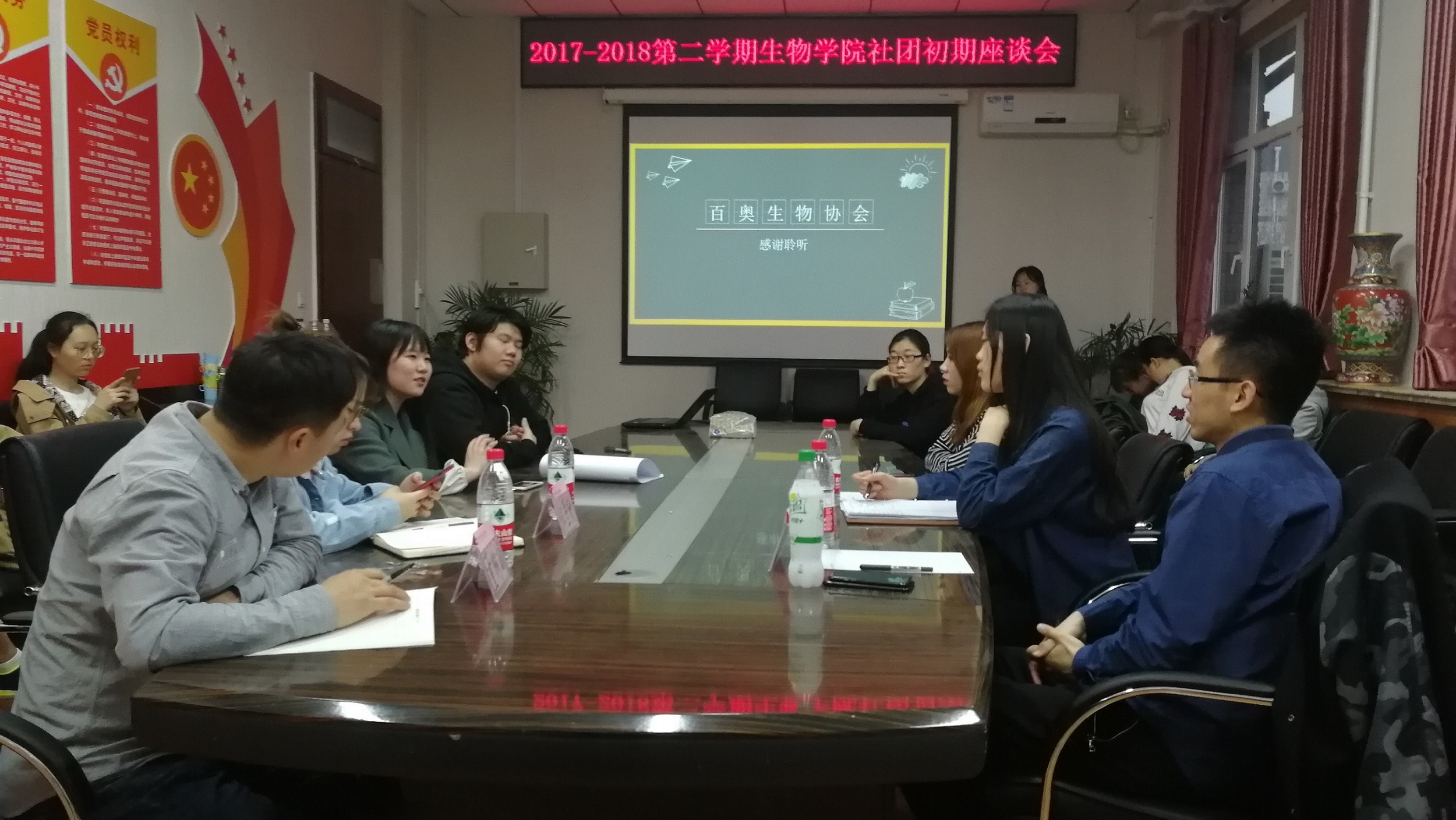 社团初期及终期答辩一直以来都是生物院对社团工作指导考评的主要形式。从本次开始,为增进交流,集思广益,答辩会将改为座谈会形式。希望本院社团可以与生苑学生会社科部互相扶持,立足当下,展望未来,也希望新的交流形式能给社团未来的发展带来更多灵感。