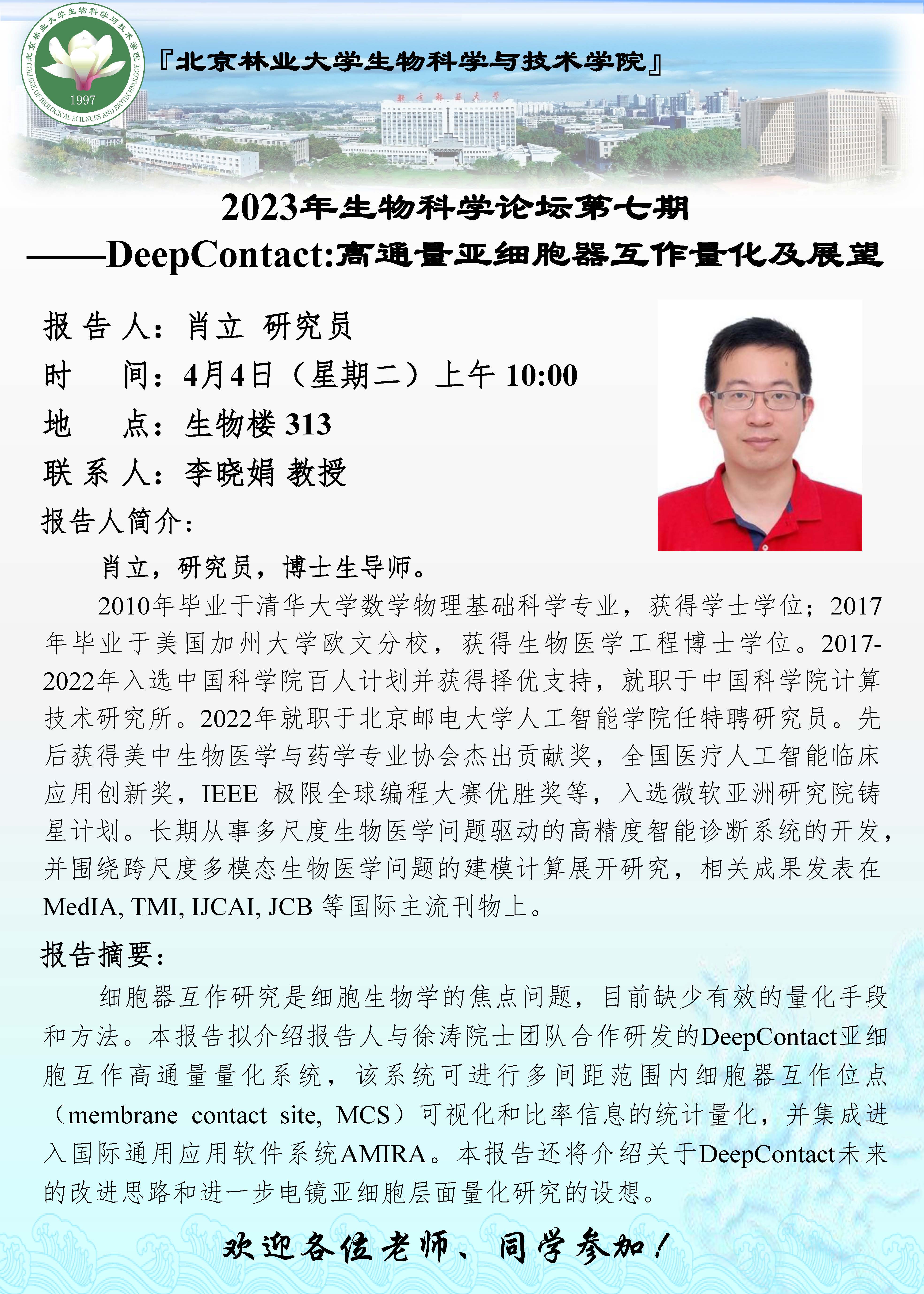 2023年生物科学论坛第七期——DeepContact:高通量亚细胞器互作量化及展望