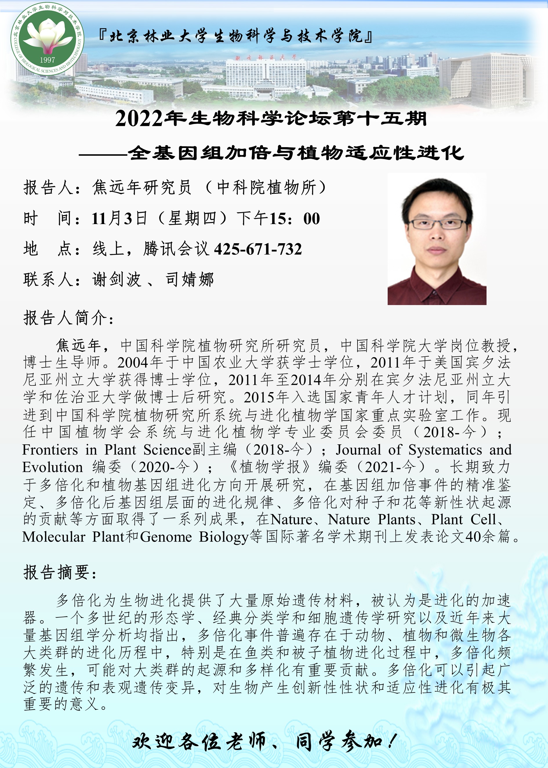 2022年生物科学论坛第十五期——全基因组加倍与植物适应性进化