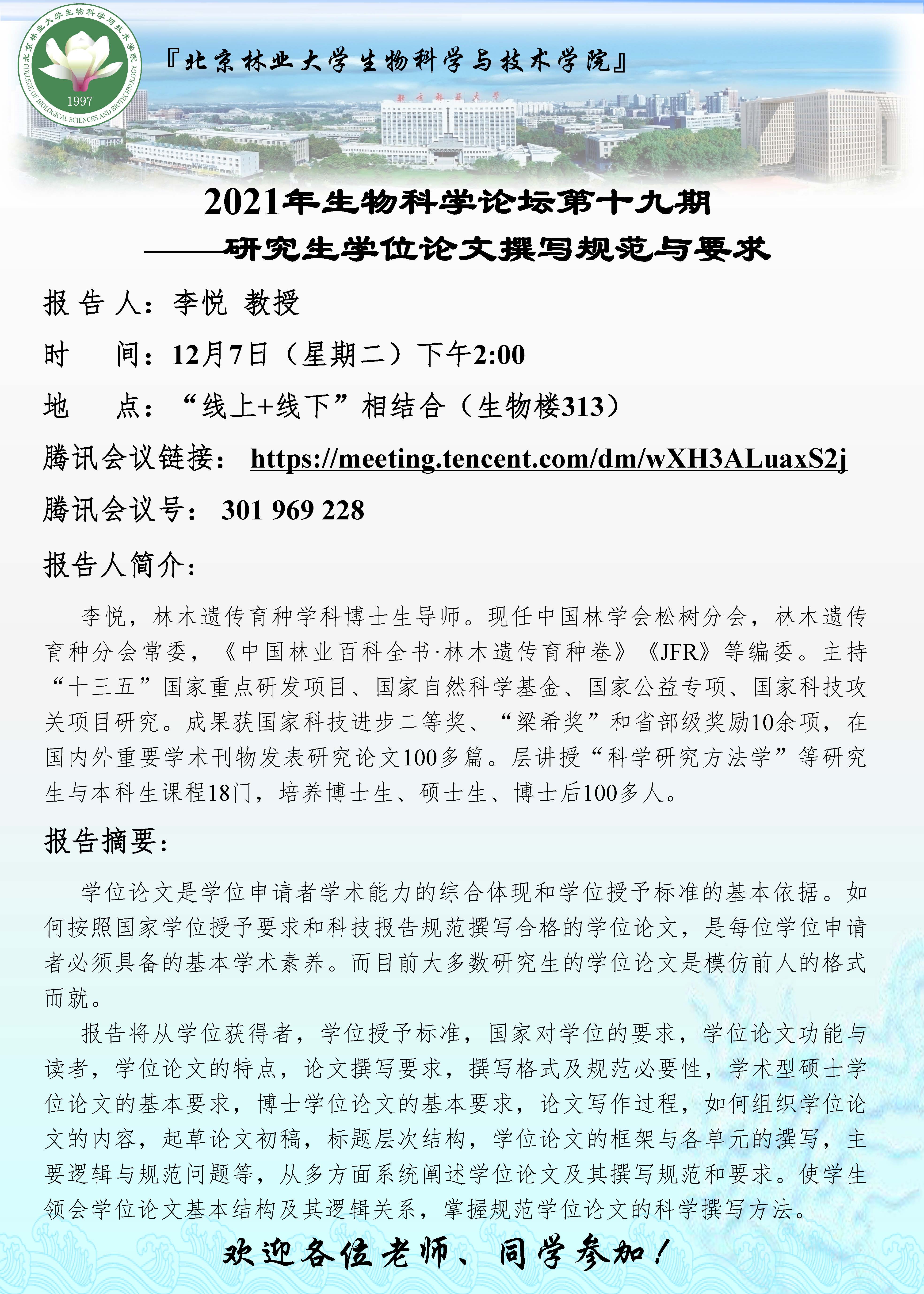2021年生物科学论坛第十九期——研究生学位论文撰写规范与要求