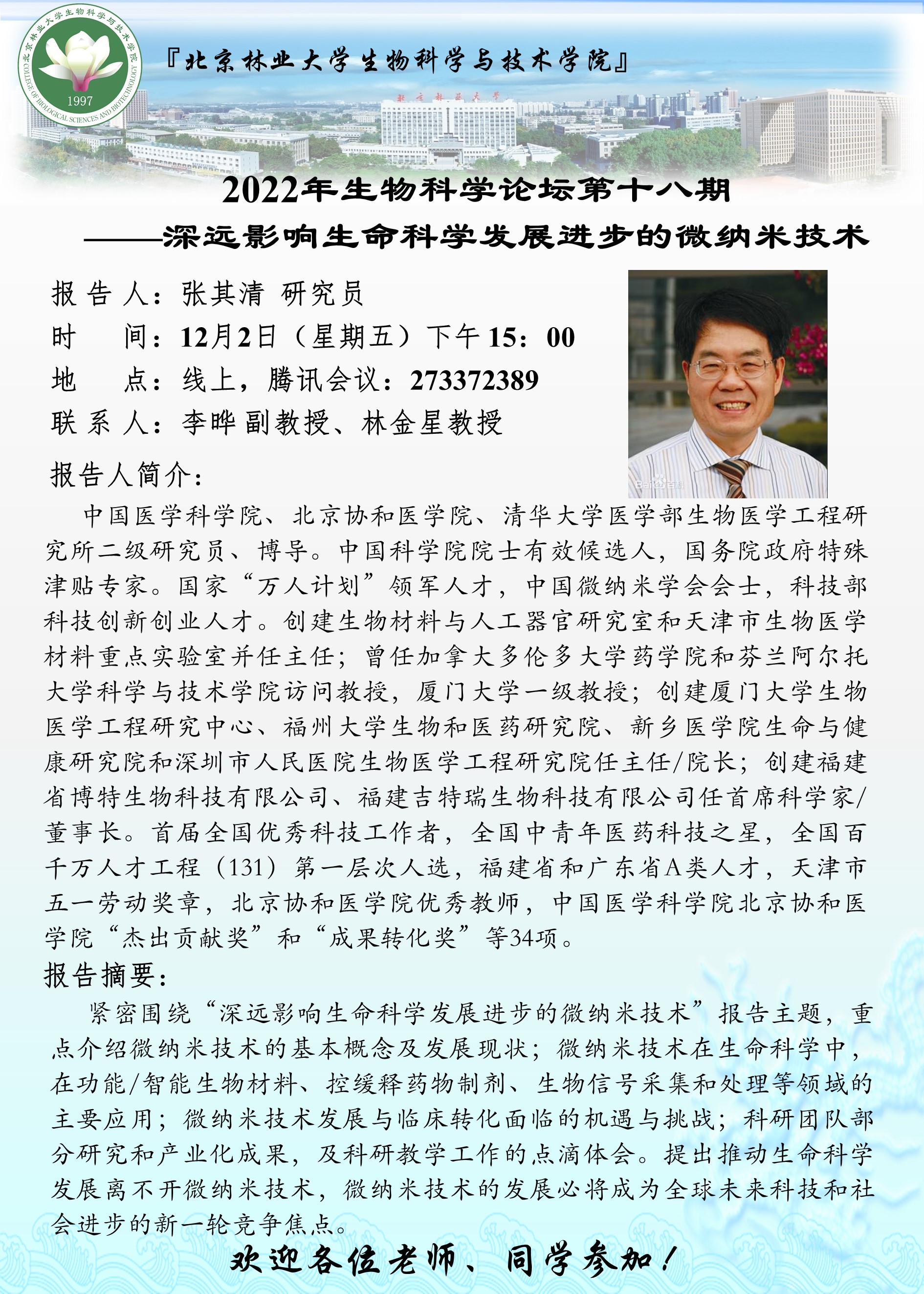2022年生物科学论坛第十八期——深远影响生命科学发展进步的微纳米技术