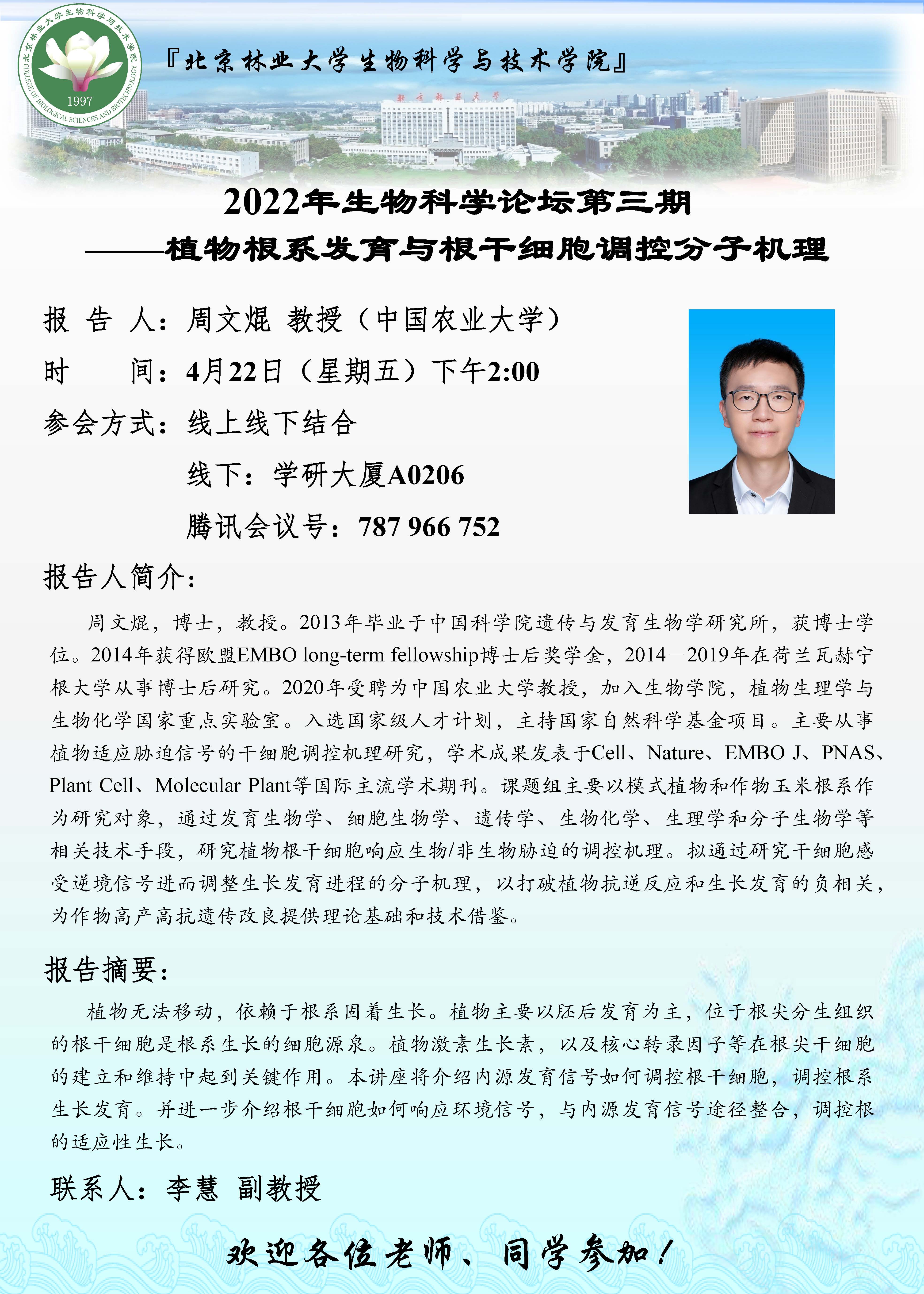 2022年生物科学论坛第三期——植物根系发育与根干细胞调控分子机理