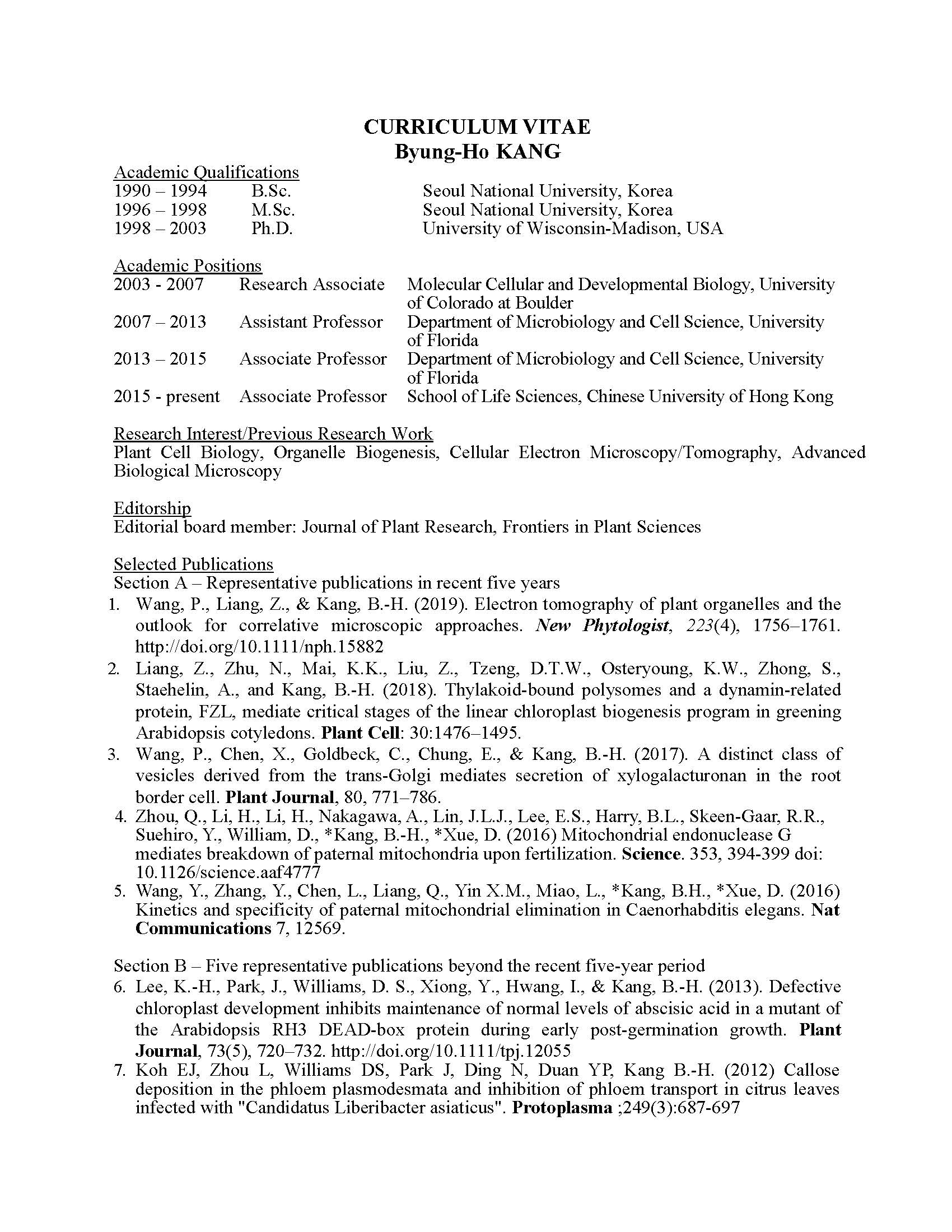 报 告 人:Byung-Ho KANG(香港中文大学)