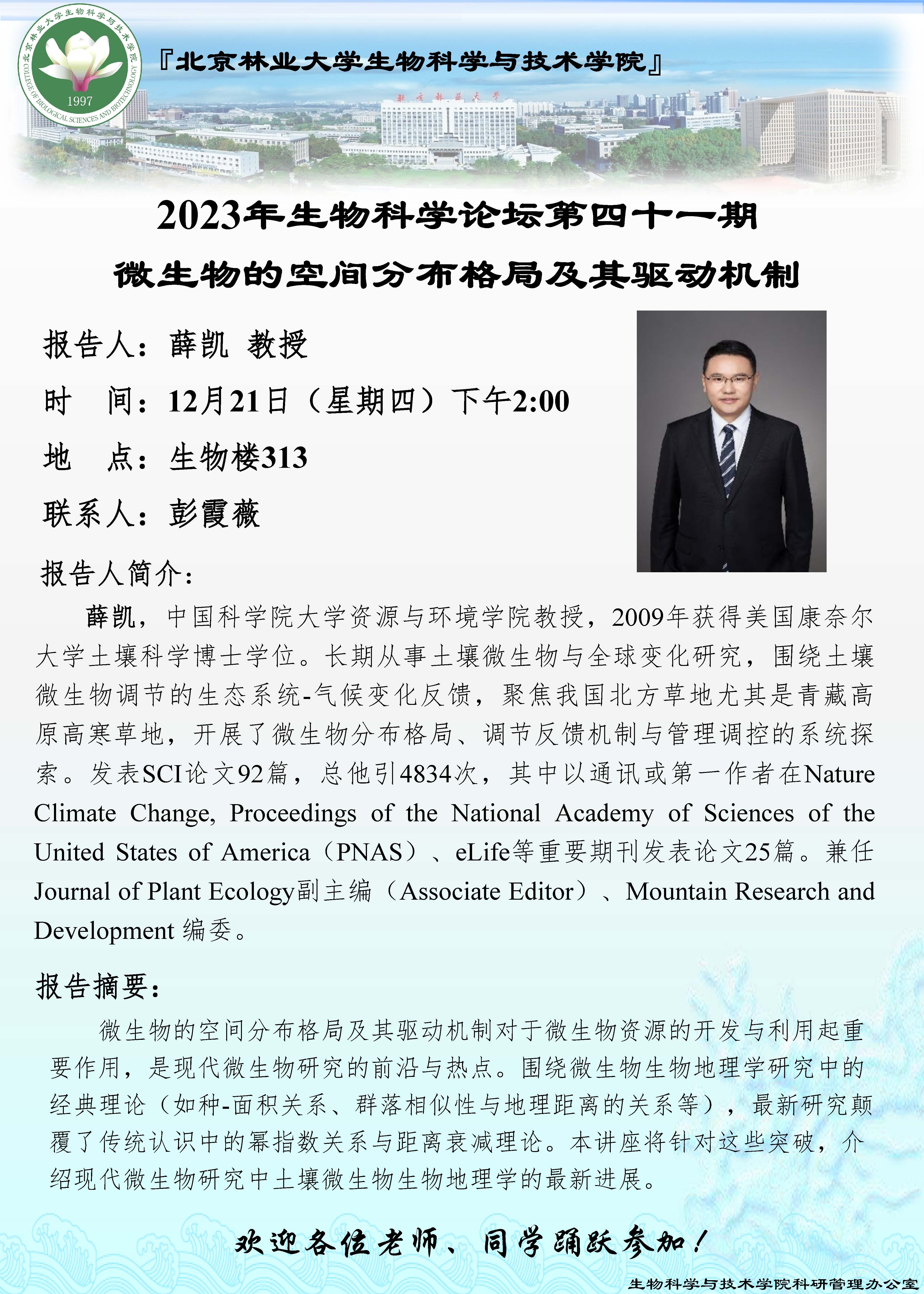 2023年生物科学论坛第四十一期——微生物的空间分布格局及其驱动机制