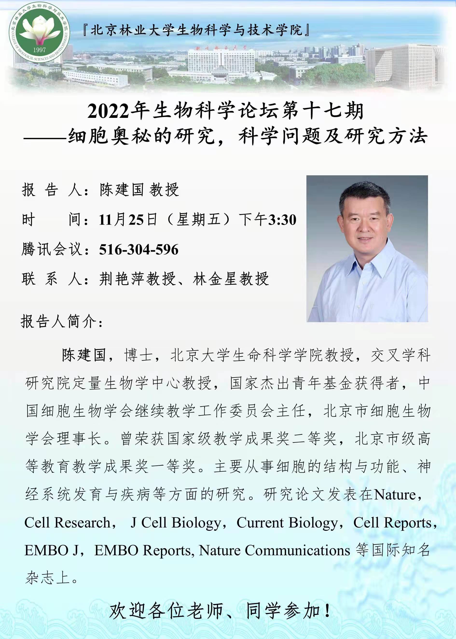 2022年生物科学论坛第十七期——细胞奥秘的研究,科学问题及研究方法