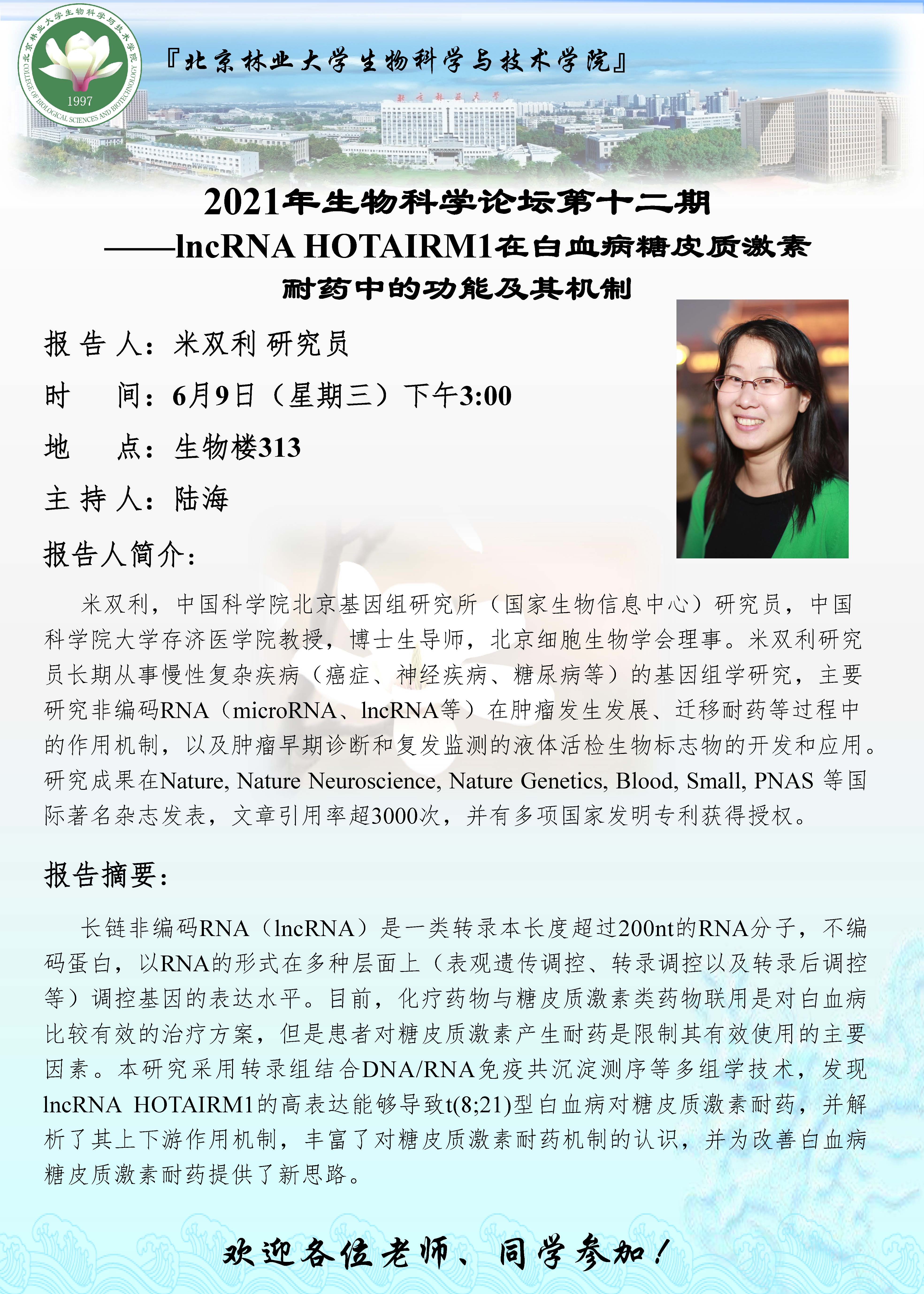 2021年生物科学论坛第十二期——米双利 研究员