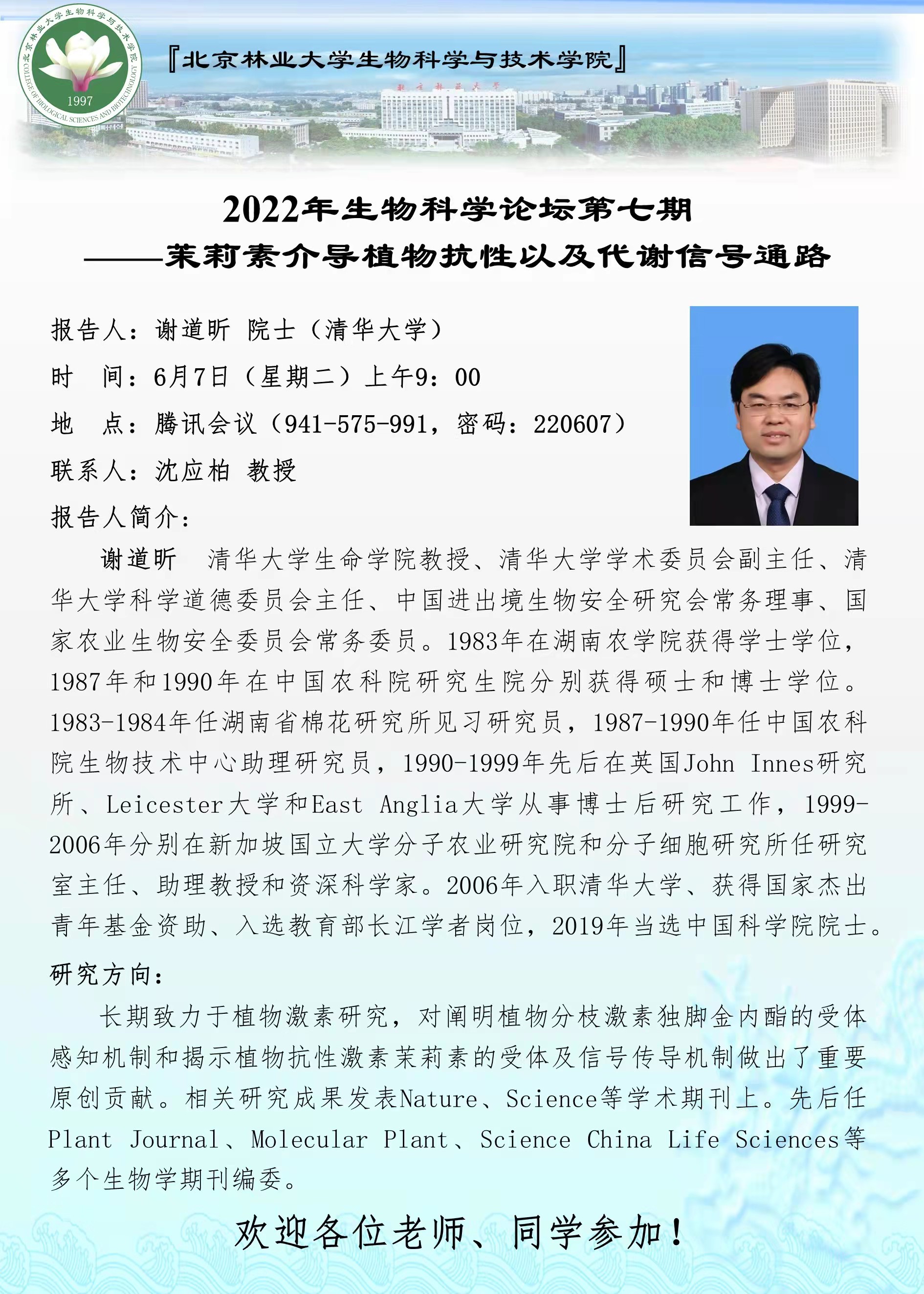 2022年生物科学论坛第七期——茉莉素介导植物抗性以及代谢信号通路