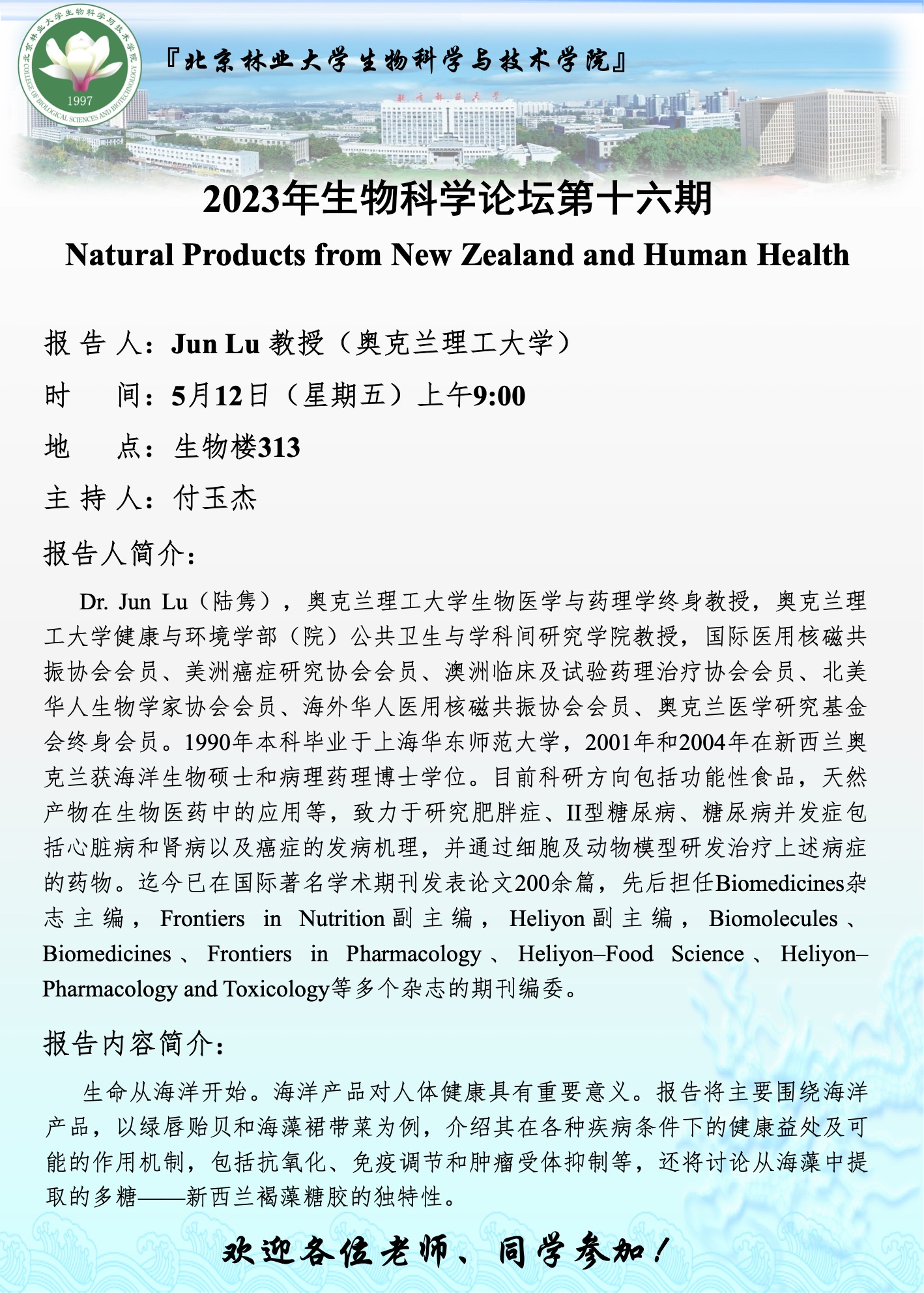 2023年生物科学论坛第十六期——Natural Products from New Zealand and Human Health