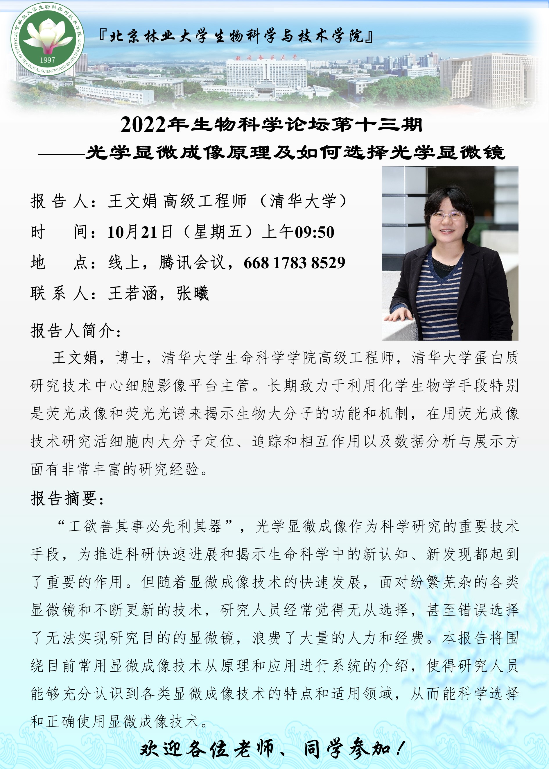 2022年生物科学论坛第十三期——光学显微成像原理及如何选择光学显微镜