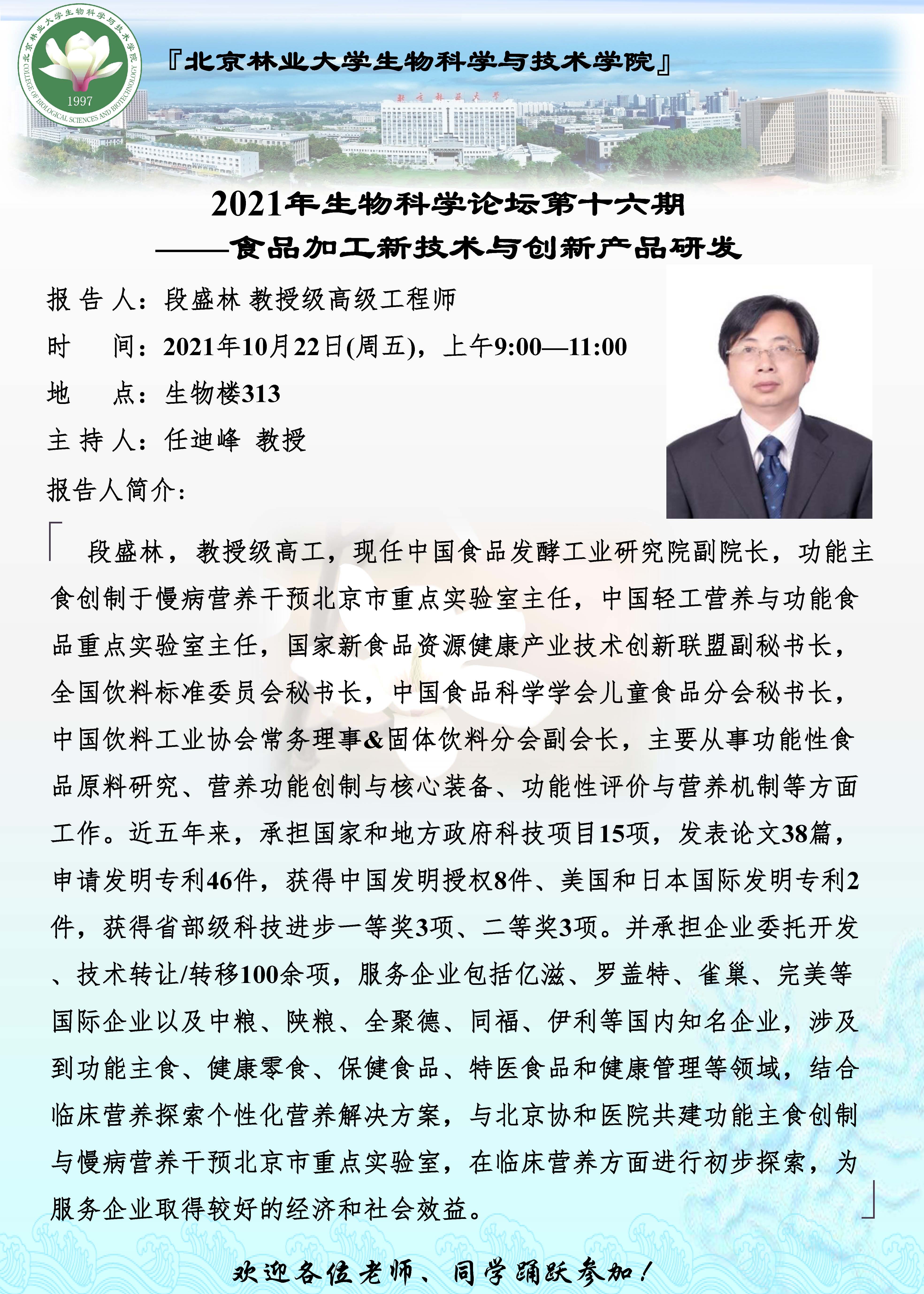 2021年生物科学论坛第十六期——段盛林 教授级高级工程师