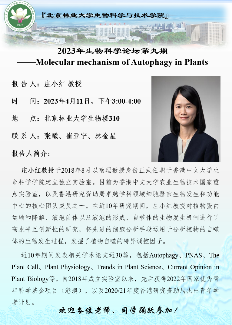 2023年生物科学论坛第九期——Molecular mechanism of Autophagy in Plants