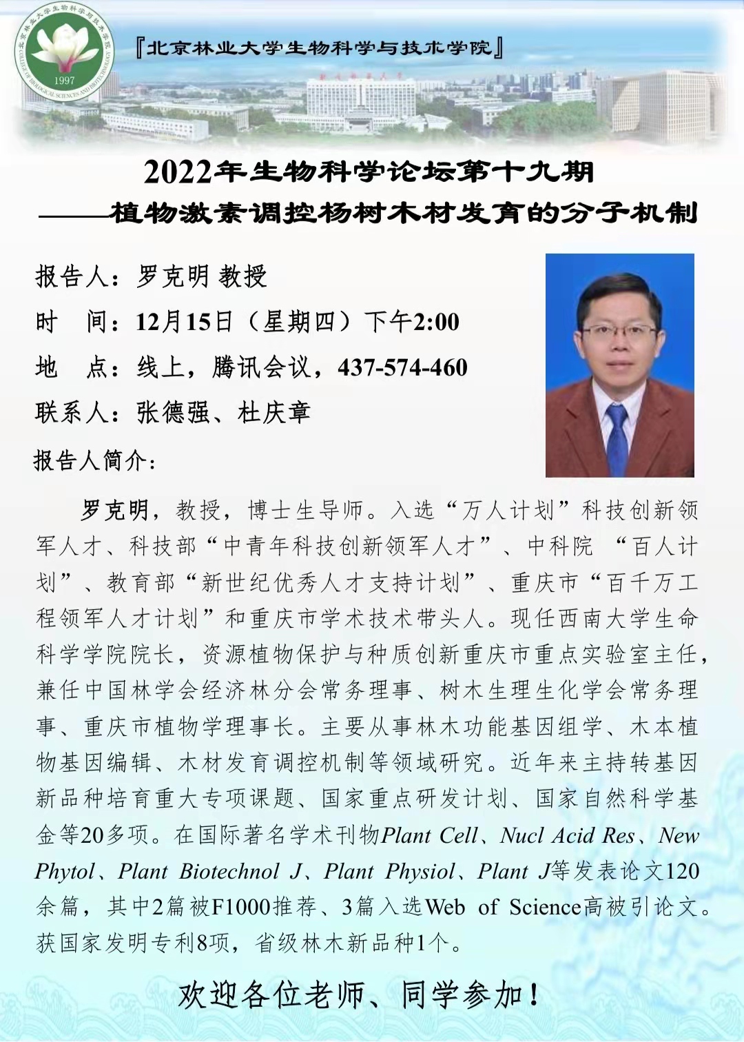 2022年生物科学论坛第十九期——植物激素调控杨树木材发育的分子机制
