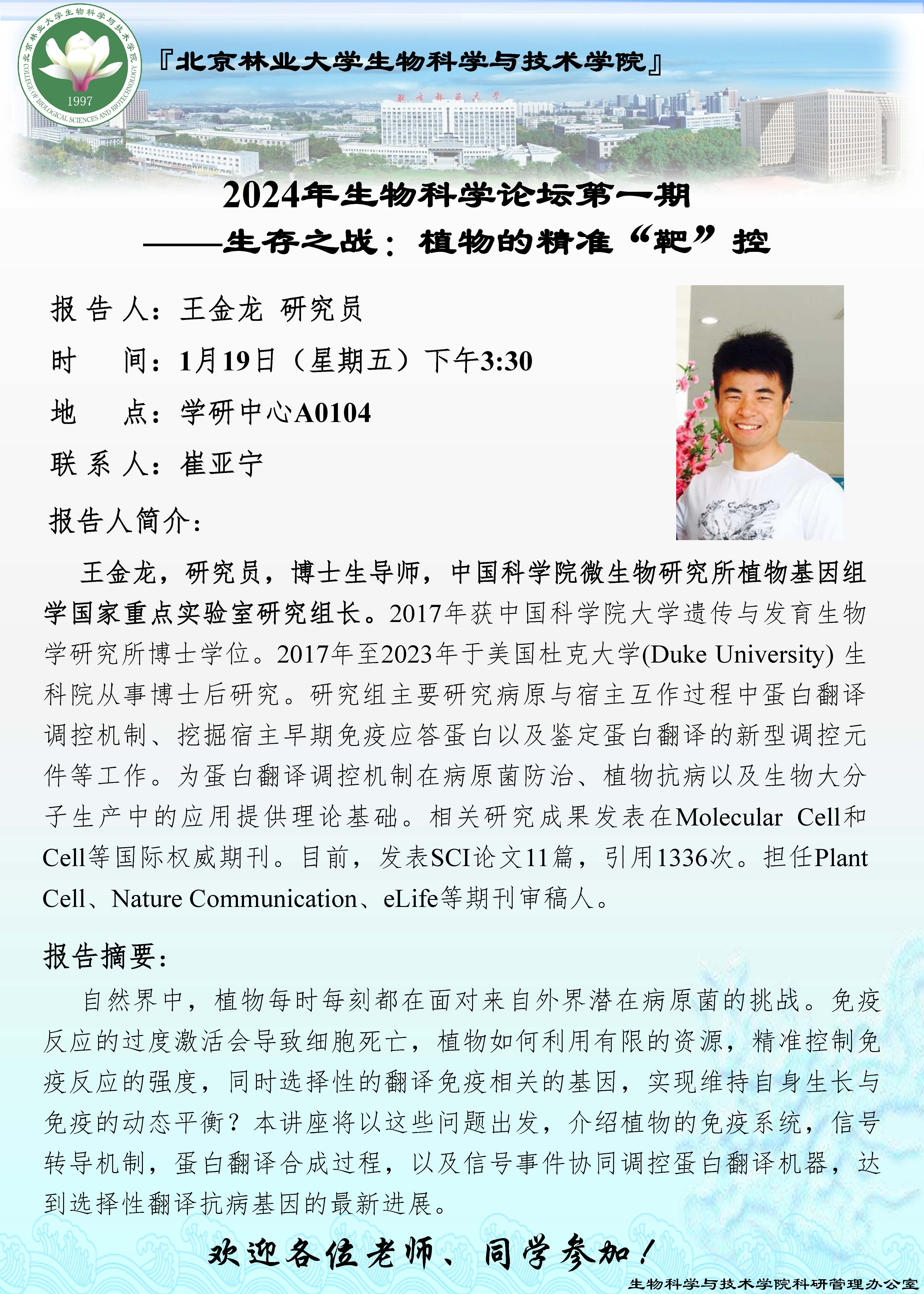 2024年生物科学论坛第一期——生存之战:植物的精准“靶”控
