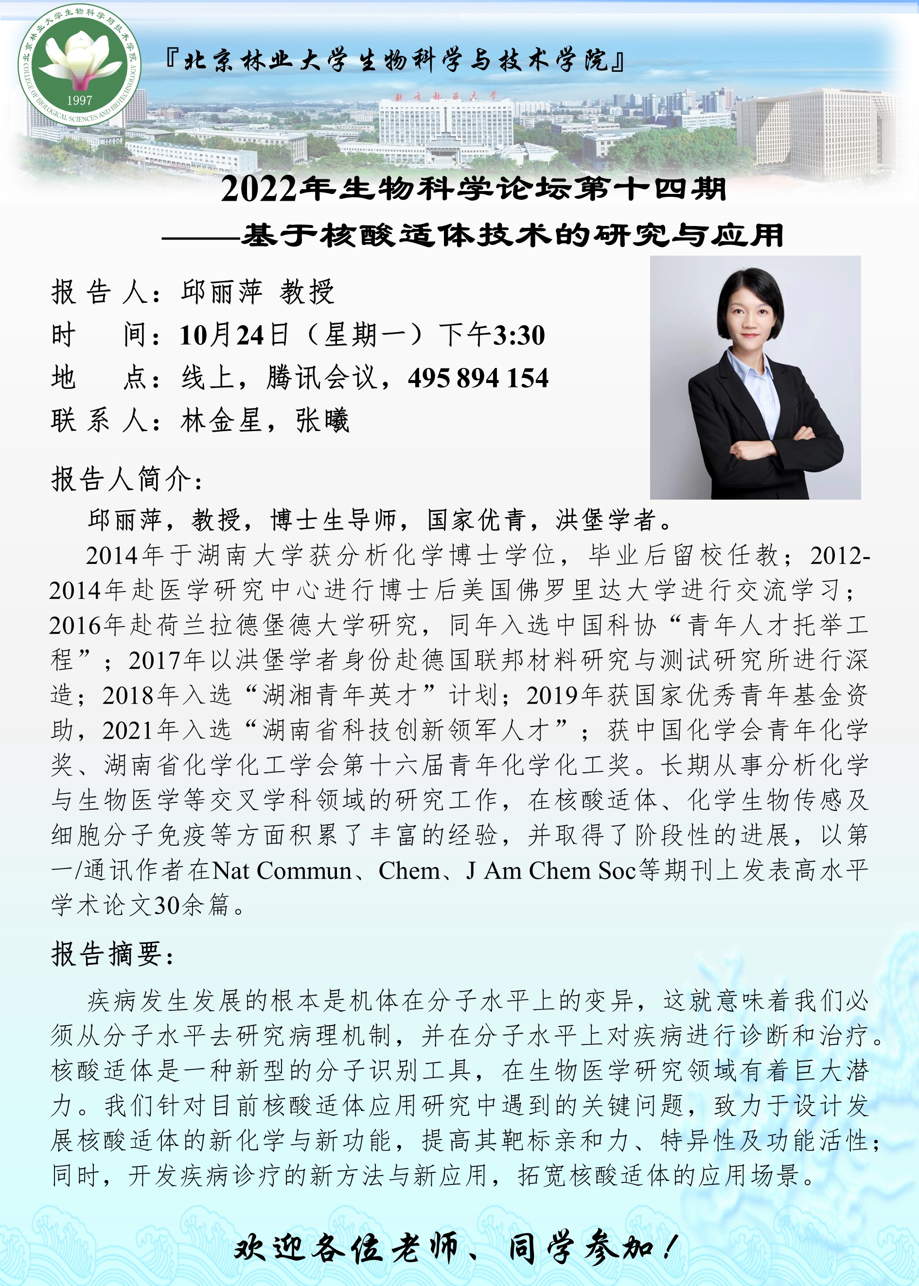 2022年生物科学论坛第十四期——基于核酸适体技术的研究与应用