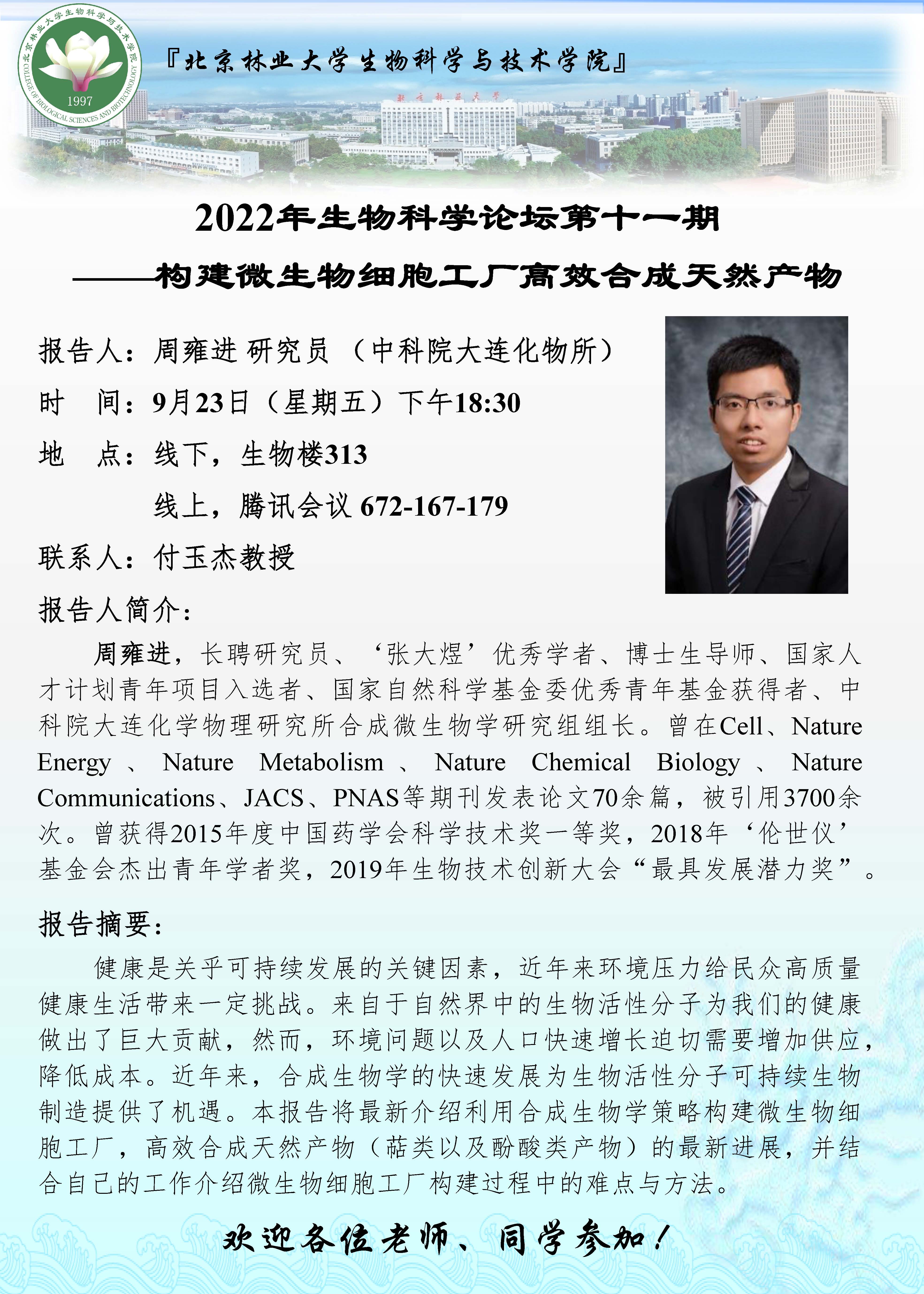 2022年生物科学论坛第十一期——构建微生物细胞工厂高效合成天然产物