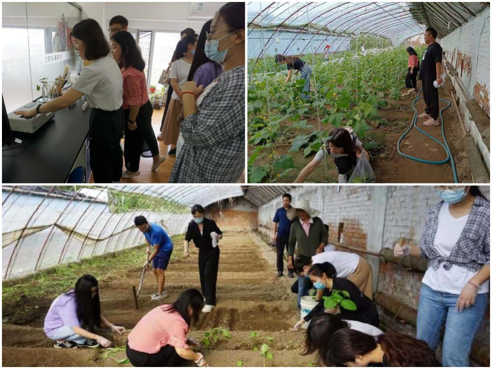 随后,党支部成员在园区工作人员的指导下,进行了蔬菜移栽、播种和浇水等劳动实践;前往农艺园农药残留检测平台进行模拟操作,该平台用于定期检测园区蔬菜的农药残留情况,以保证蔬菜安全合格。