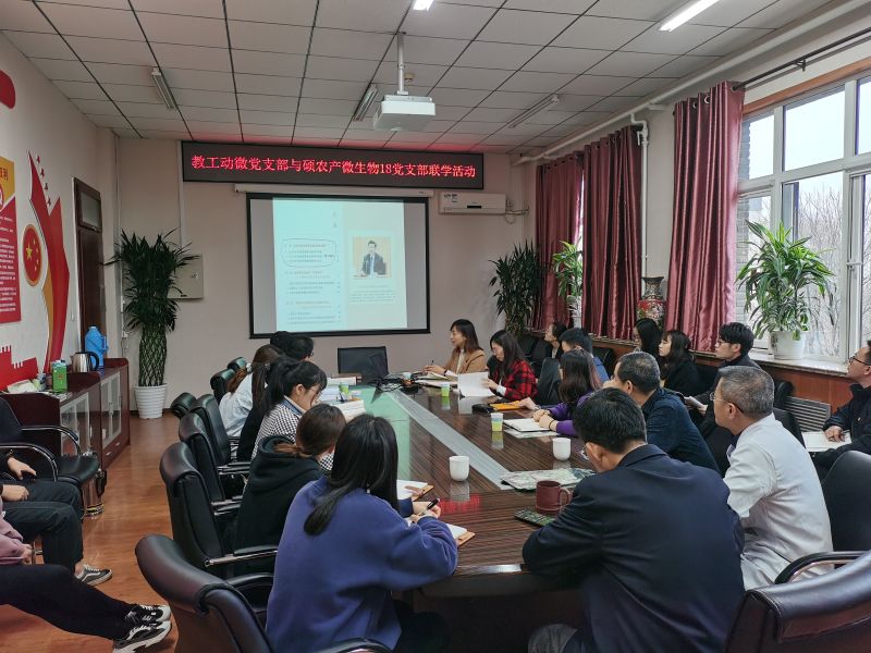 近日,生物学院教工动微党支部与硕农产微生物18党支部开展联学活动。院党委书记庞有祝,博物馆常务馆长张勇,动微党支部以及硕农产微生物18党支部全体党员参会。会议由动微党支部支部书记何晓青主持。