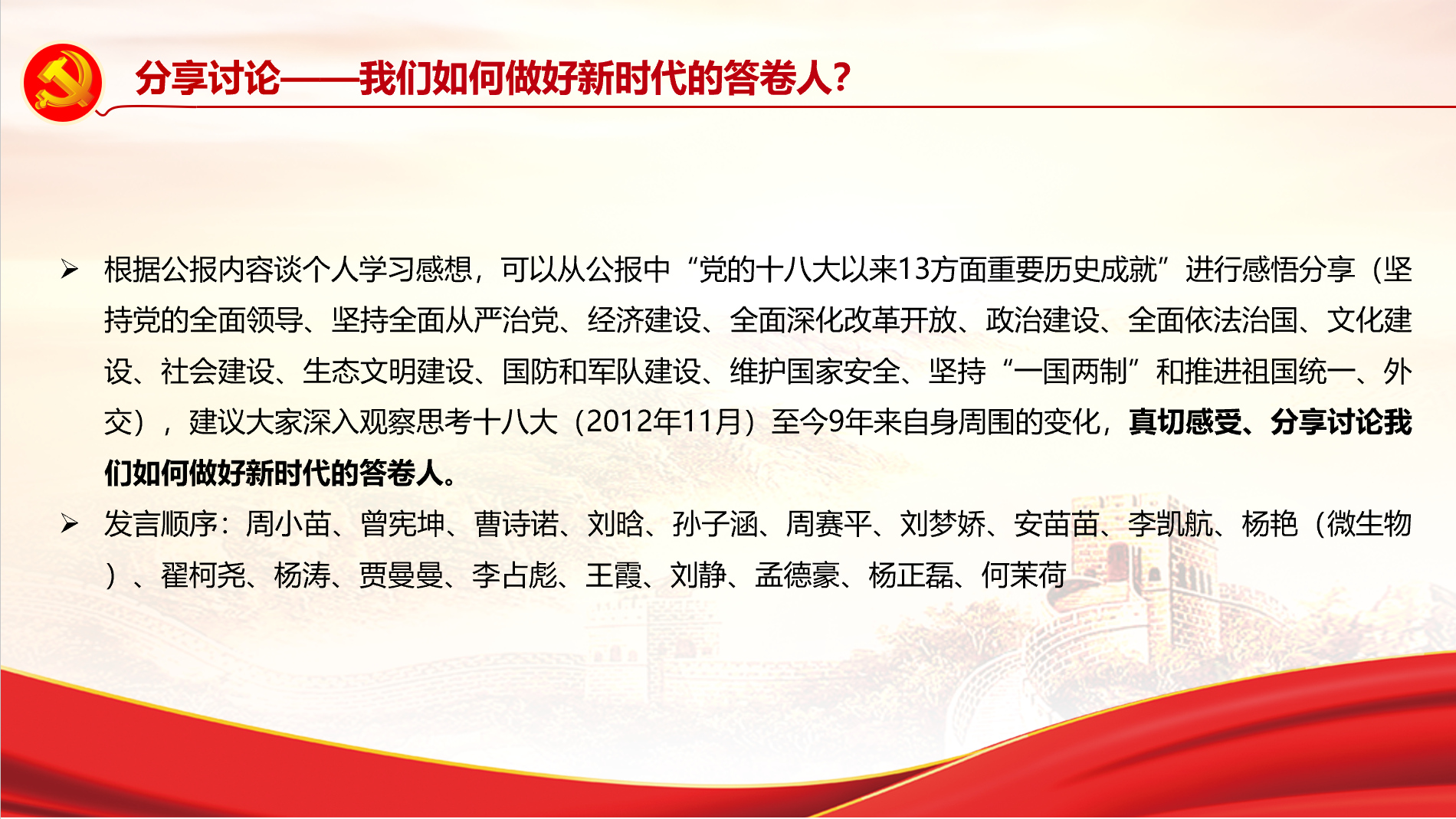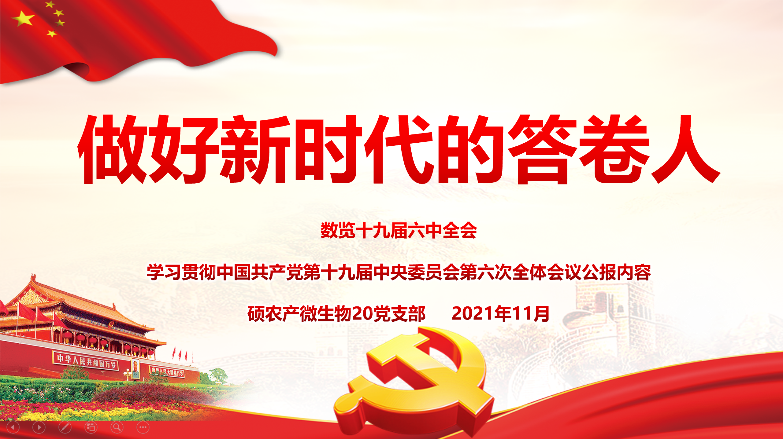 根据学校通知要求,结合学院实际,11月25日晚上,硕农产微生物20党支部开展线上专题学习——“做好新时代的答卷人”,深入学习党的十九届六中全会精神。