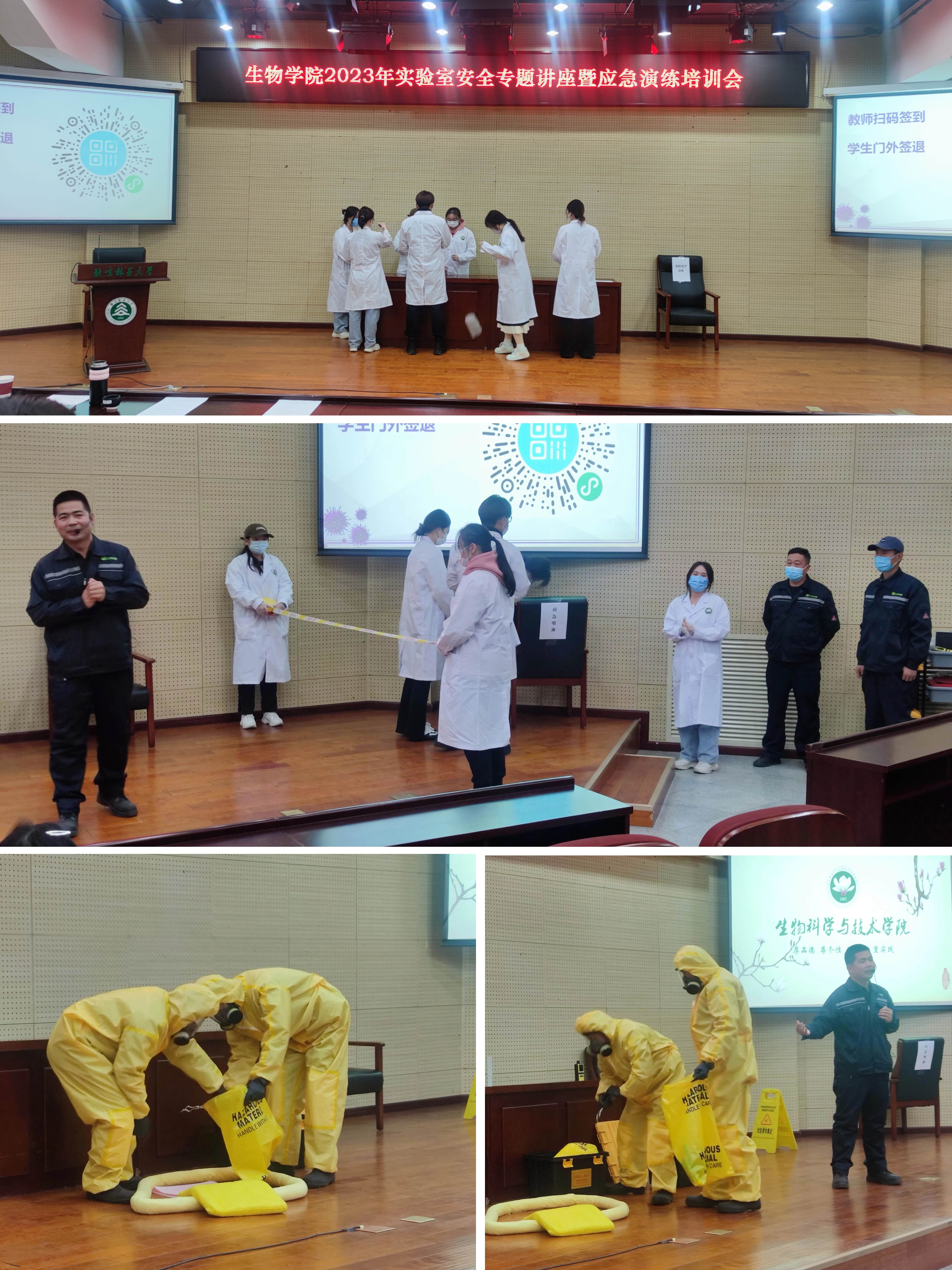 据悉,本次实验室安全培训及应急演练是生物学院“实验室安全月”安全月的系列活动之一。生物学院将通过电路隐患专项整改、高压灭菌锅隐患排查、增加应急喷淋装置、院级实验室安全工作评优表彰等系列活动,切实做好学院实验室安全管理工作。