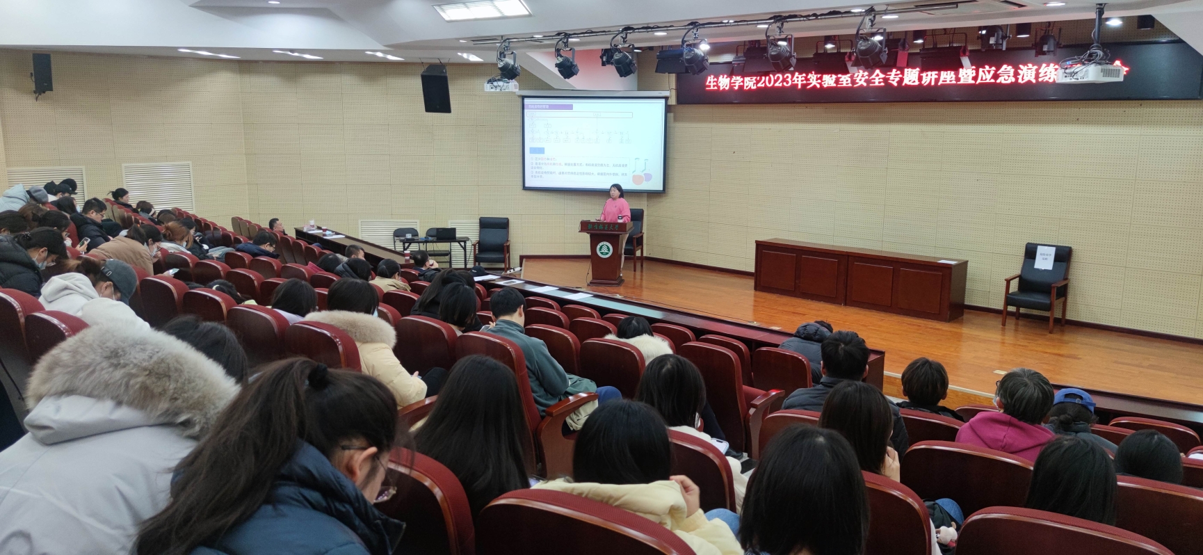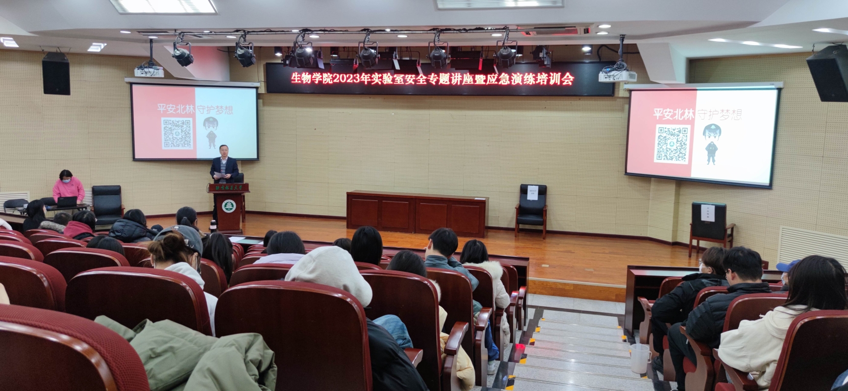 为进一步加强实验室安全管理,保障教学、科研工作的正常运行,11月30日,生物学院组织开展了实验室安全培训和安全应急演练活动。生物学院党委书记、副院长、党委保卫部科长毛承治、实验室安全责任人、巡查员以及研究生代表150余人参加了培训和演练。会议由副院长吴庆利主持。