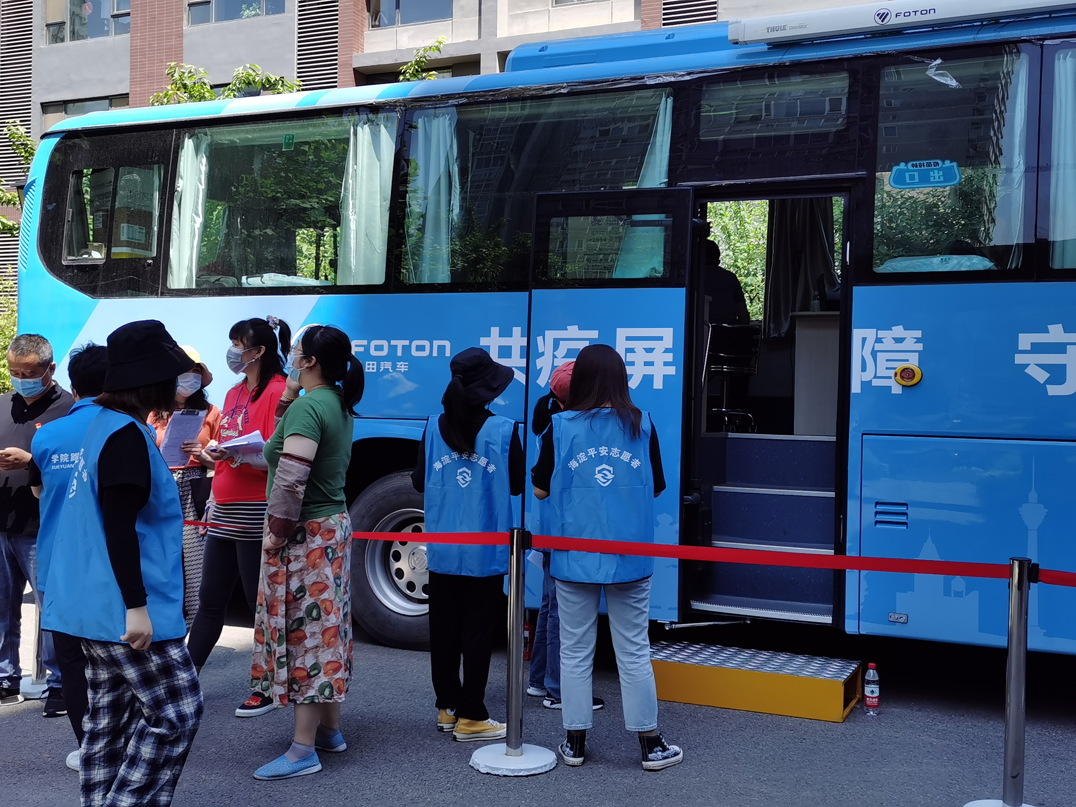 早上八点,负责接种新冠疫苗的接种车已经停在小区内,同学们也已经有序在工作人员的分配下守在了各自的岗位 ,组织居民有序地排队进行接种流程。