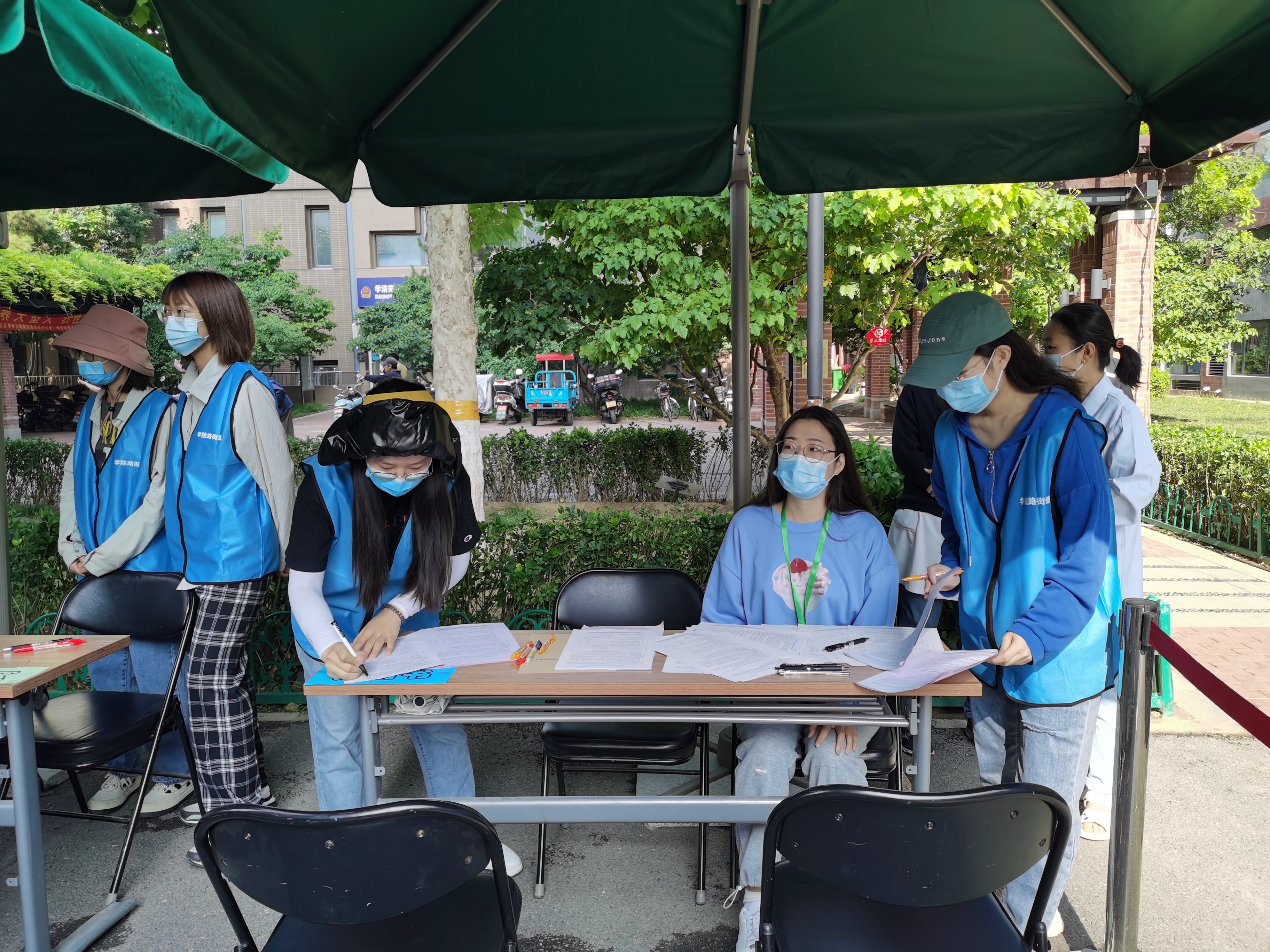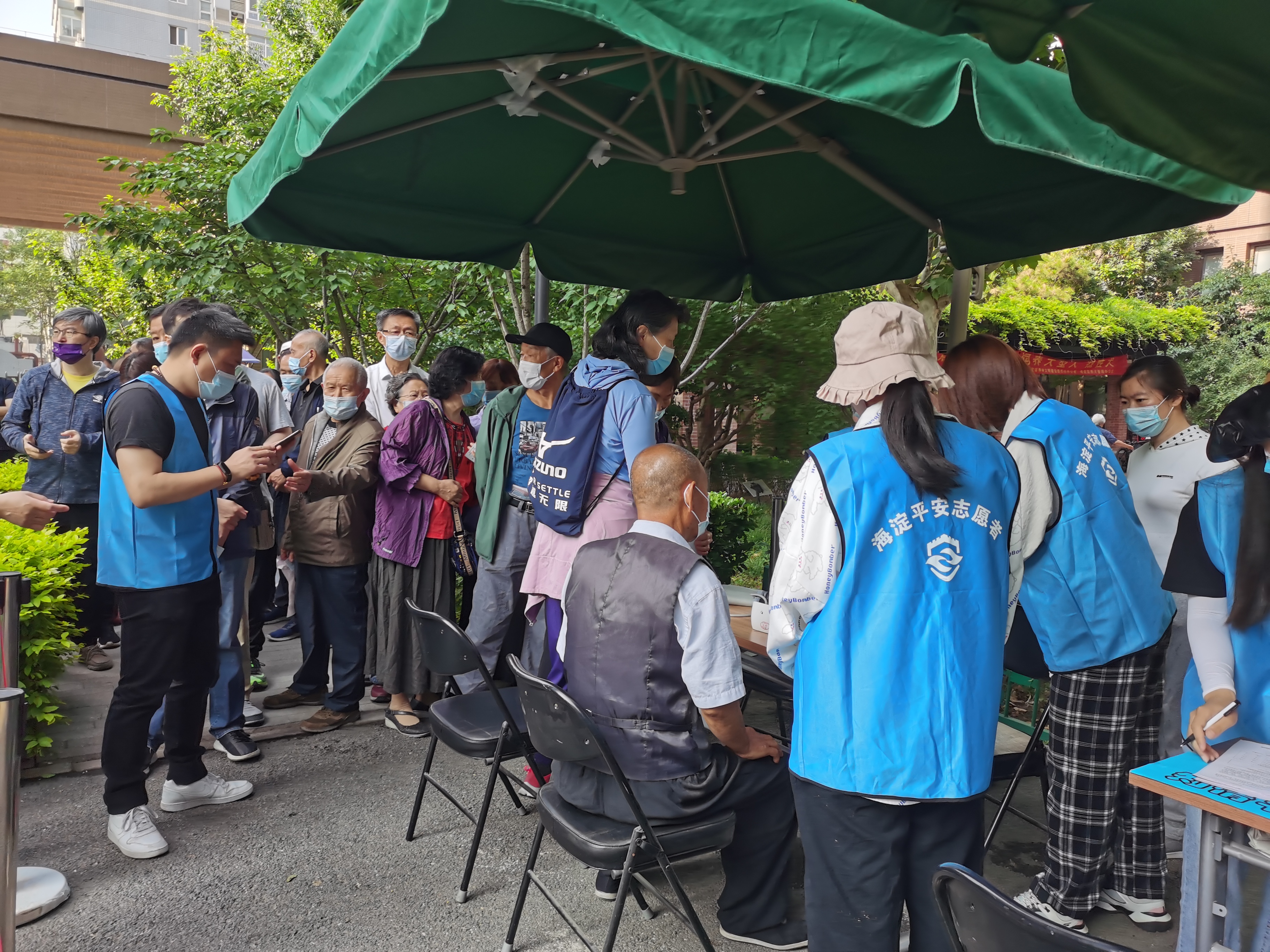 上午八点半,疫苗接种正式开始,同学们开始忙碌起来,小区里参加接种的居民也越来越多,排起长龙,并且在志愿者的安排下依次进行了预约、签到、疫苗接种、接种后停留观察30分钟等事项。