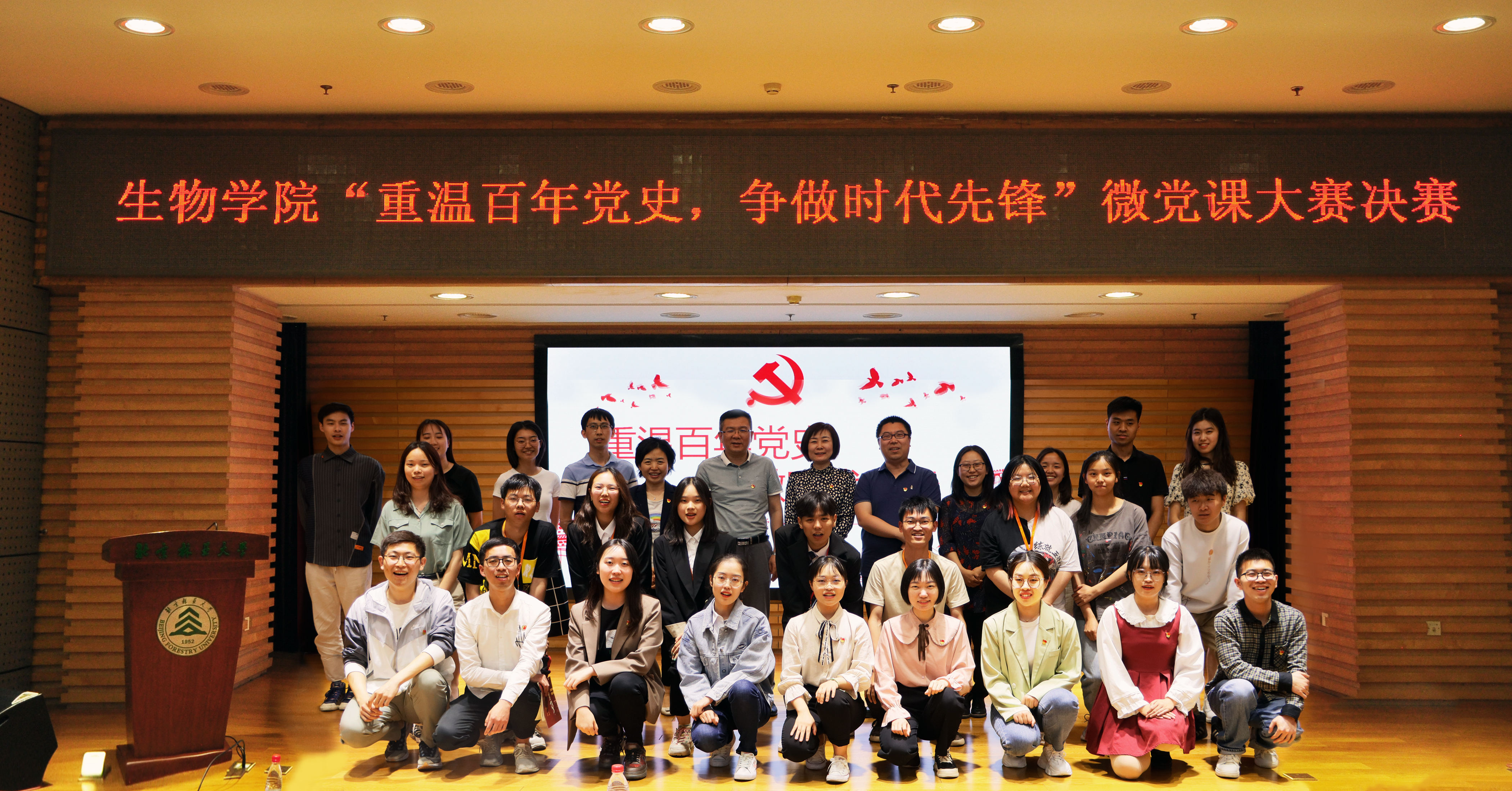 5月29日,生物学院“重温百年党史,争做时代先锋”微党课大赛决赛顺利举办。学校党委宣传部副部长杨金融、学生处副处长温跃戈、党校李海强、马克思主义学院张婷应邀担任大赛评委,学校党史学习教育督导组第一组组长杨雪松莅临指导,学院党委书记王士永、副书记李香云出席。