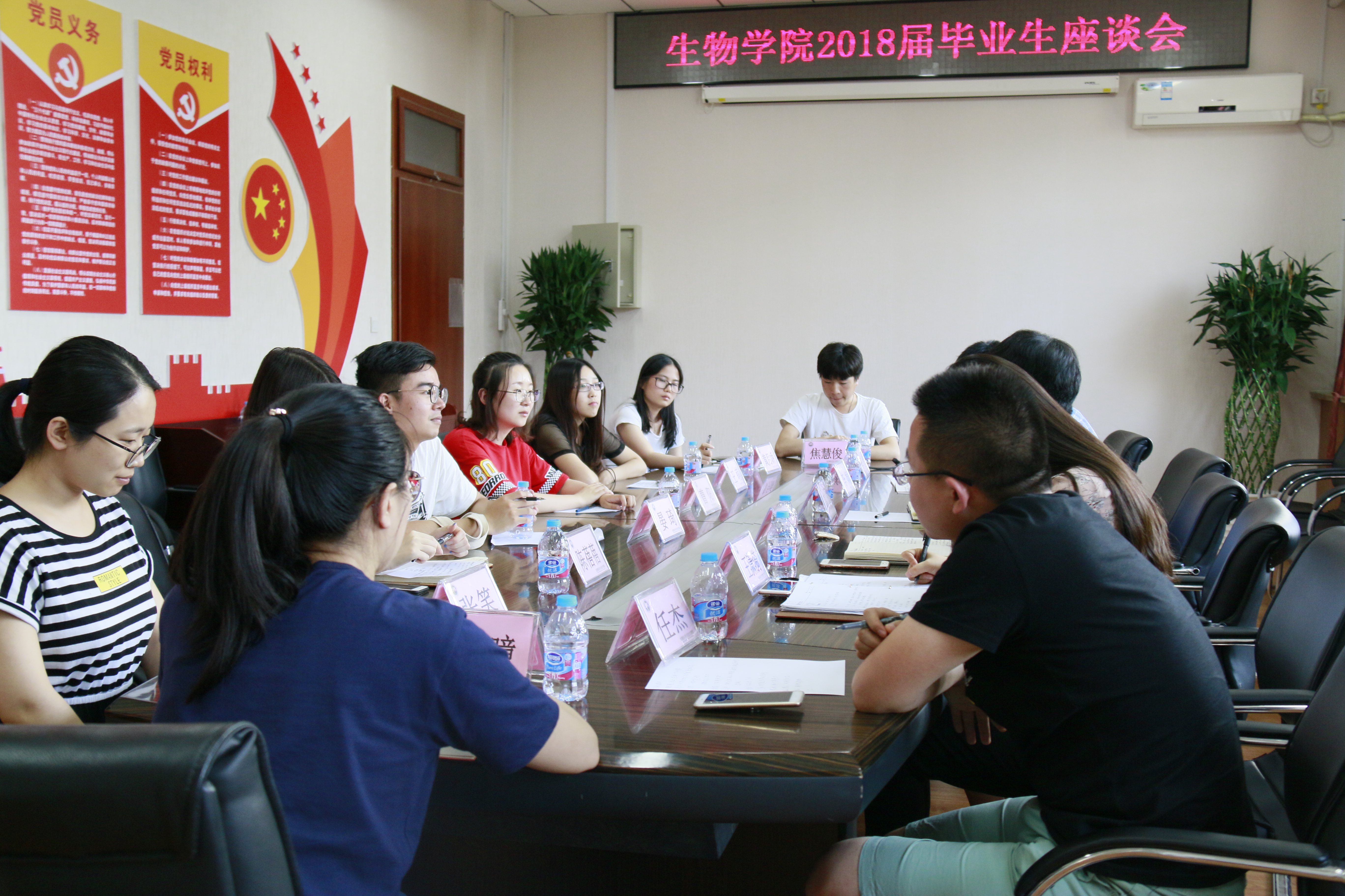 6月21日下午,生物学院在生物楼310会议室召开2018届毕业生座谈会。生物学院党委副书记、副院长王艳洁、副院长高琼、学院团委就业相关负责老师出席座谈会,来自学院6个专业的本科生、研究生共9名参与本次座谈会。