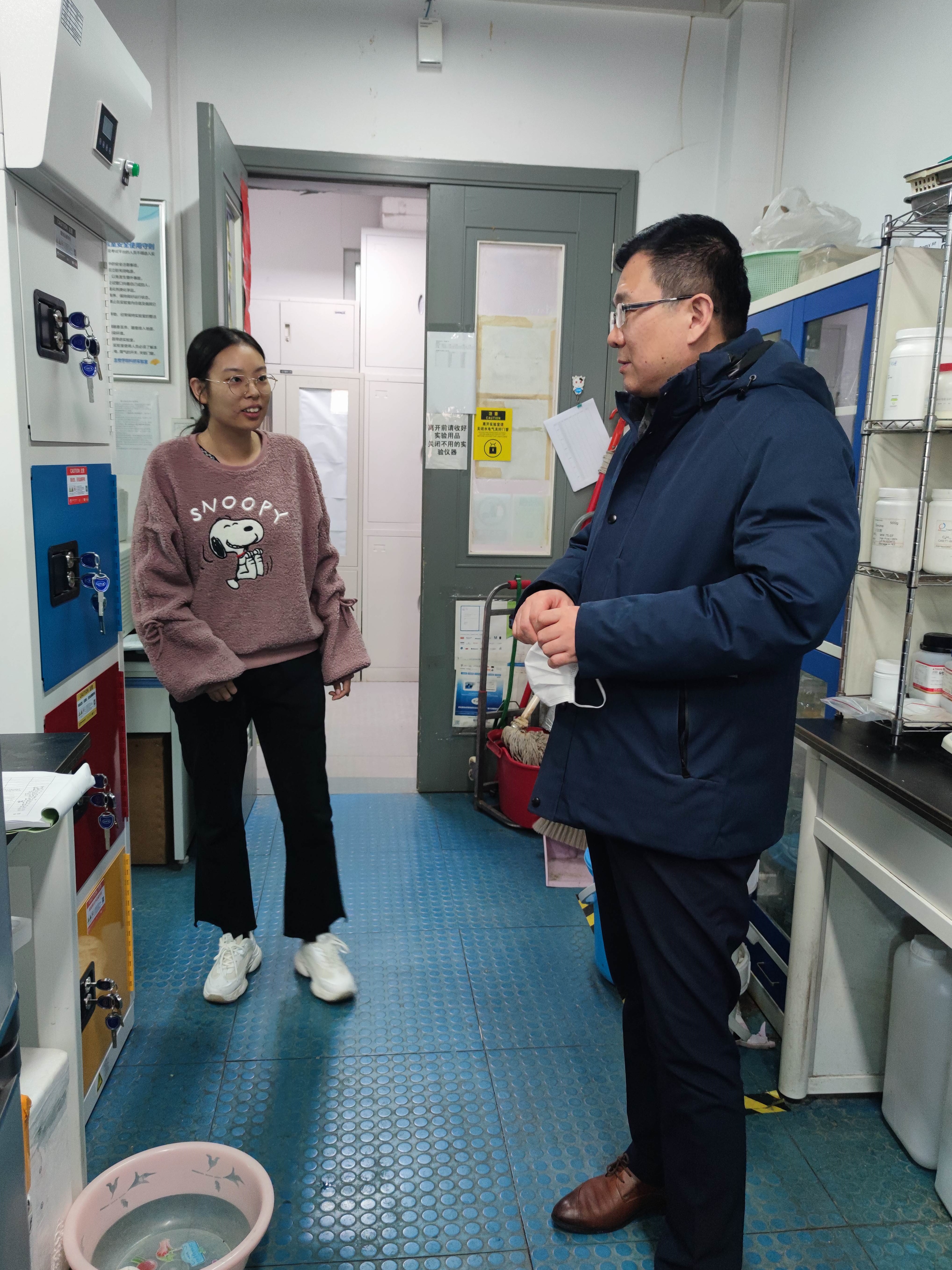 在检查过程中,学院负责人反复强调了安全工作的重要性,要求安全责任人坚决负起实验室安全这个第一重责。并向实验室师生强调,在实验室开展工作一定要做好个人防护,避免受伤。各实验室要深刻汲取近年来多地发生的实验室安全事故教训,不断强化红线意识和底线思维。随后,检查小组实地考察了学院危化品暂存室的建设情况,要求加快建设,以更好地服务于各实验室,促进学院危化品安全管理工作科学、规范、高效。