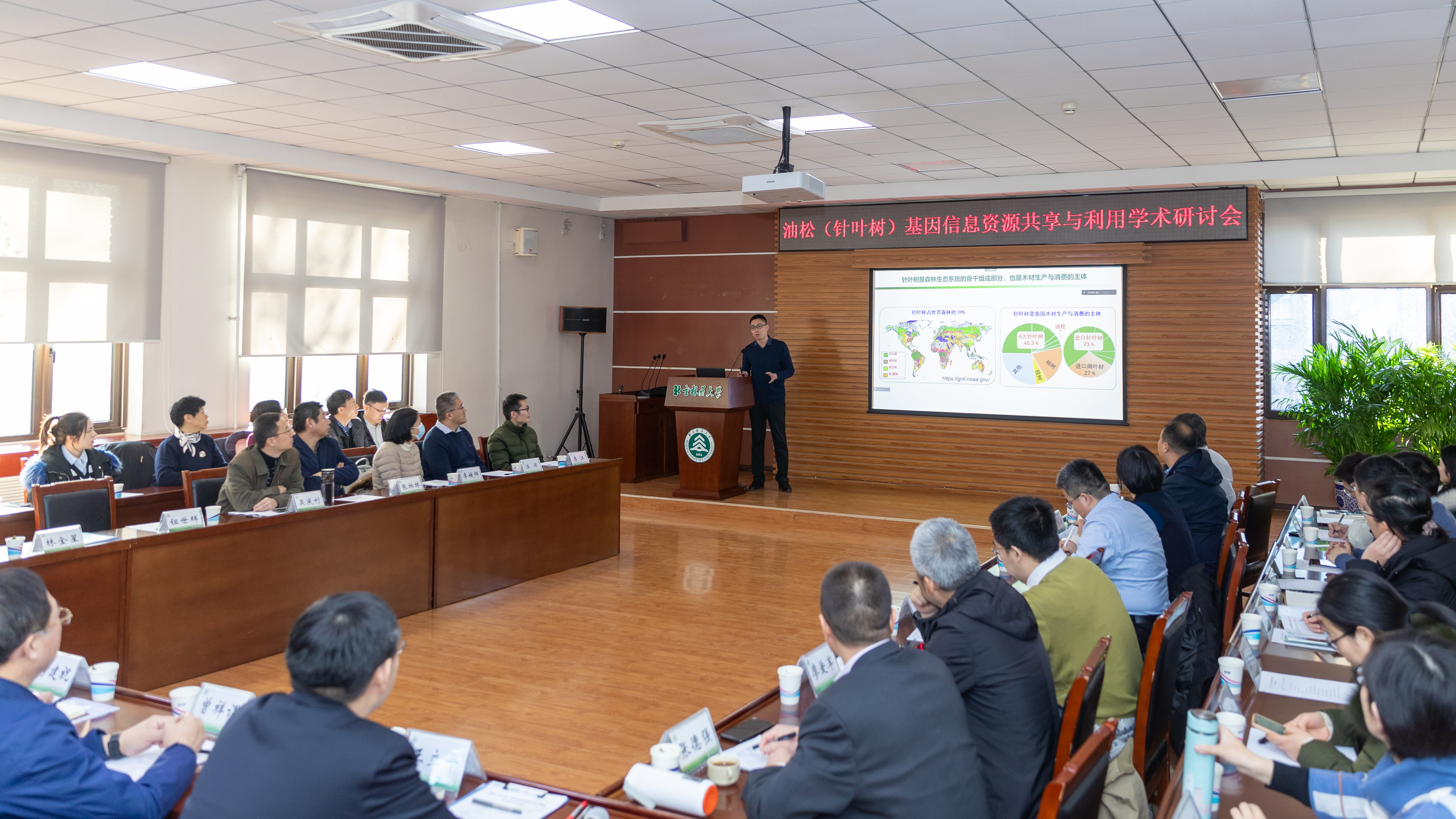 12月29日,生物学院召开“面向世界科技前沿,推动油松基因信息资源共享与利用”主题学术研讨会,国家林草局科技司副司长、一级巡视员厉建祝,北京林业大学副校长李雄,中国林学会学术部主任曾祥谓,林科院科技处处长王军辉出席会议,北京林业大学科技处处长王立平主持会议。