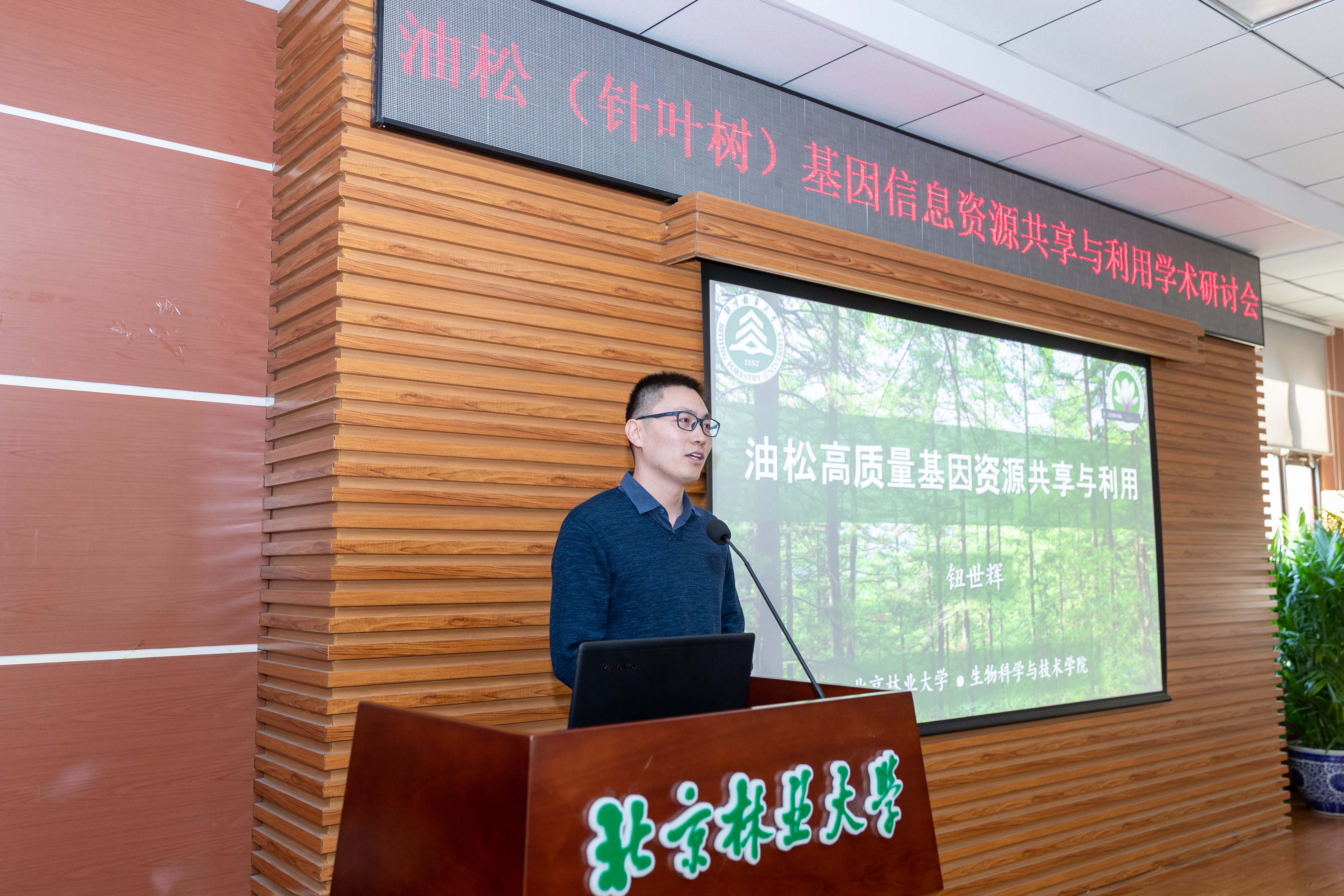钮世辉副教授详细分享了他的研究过程,并对未来的研究进行了展望。他从三个方面详细解答了国内外同行对油松基因组的突破的关注:一是为什么北林针叶树育种团队能研究这个难题;二是对于这样一个世界级难题北林团队为什么行;三是凭什么我们的结果可以做得比国际上其它团队都好。他表示,这个项目的成功具备天时、地利、人和,为使这项成果最大化地推动针叶树研究领域的发展,团队将开放共享全部数据资源。
