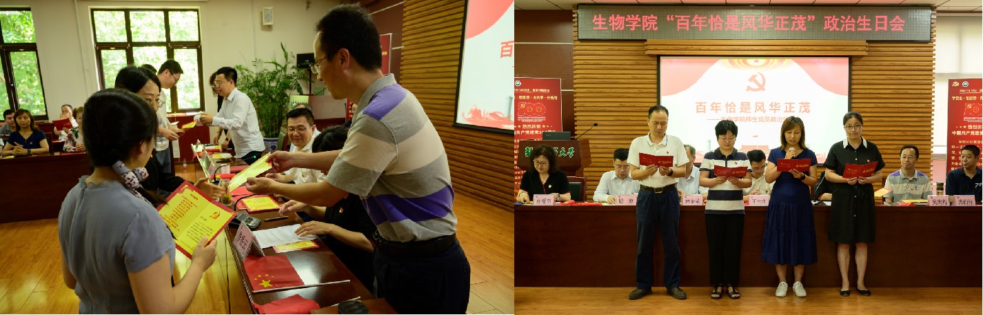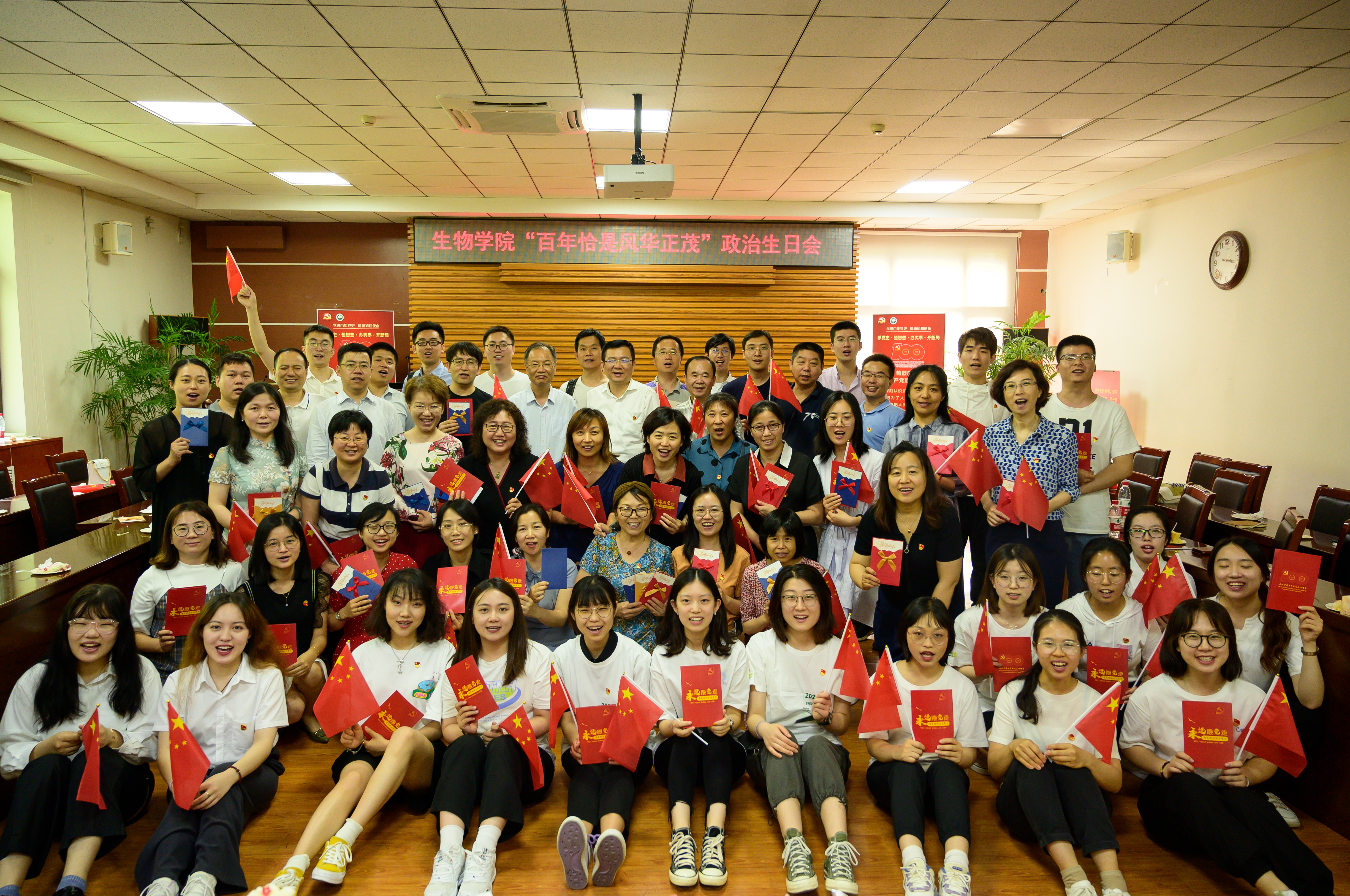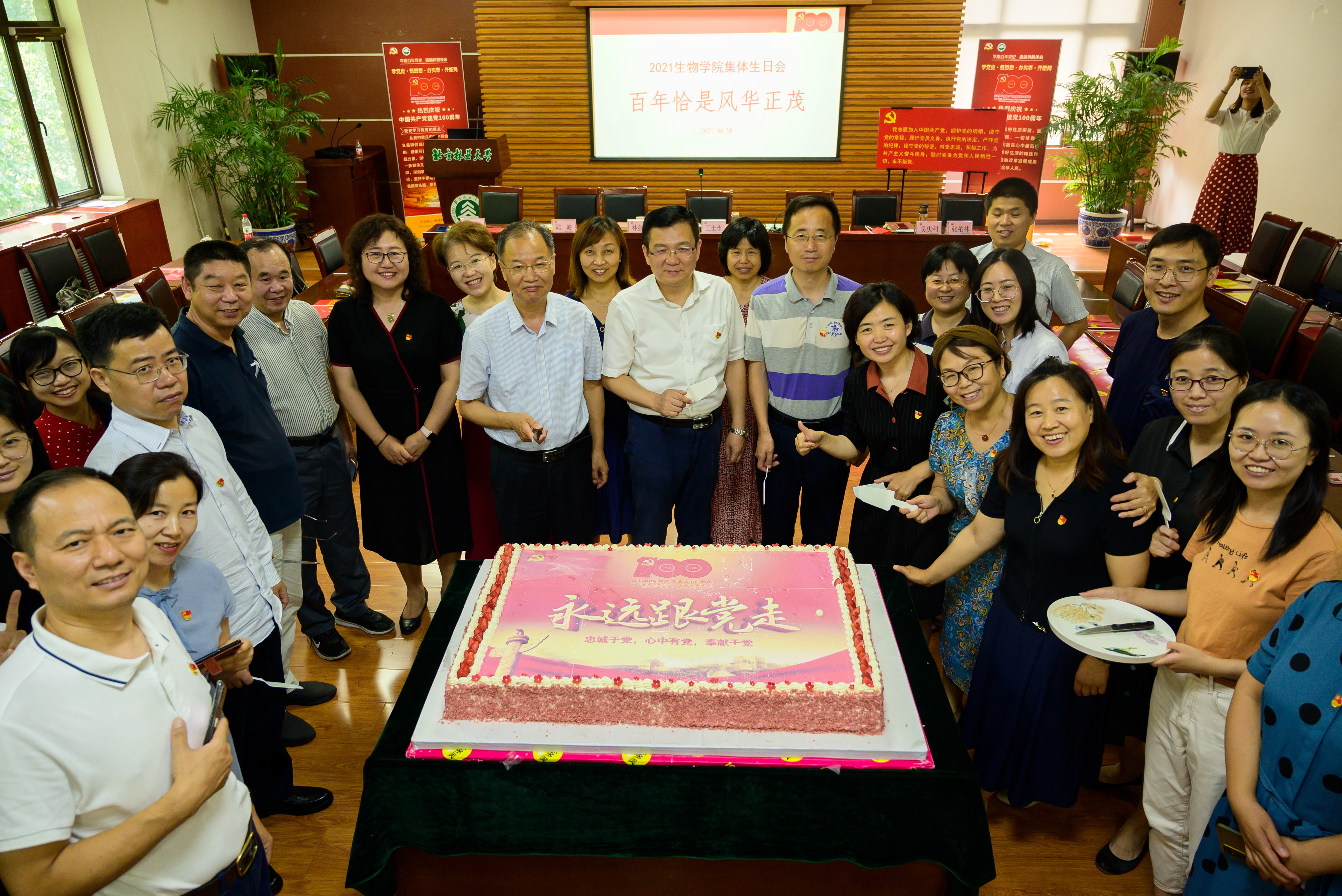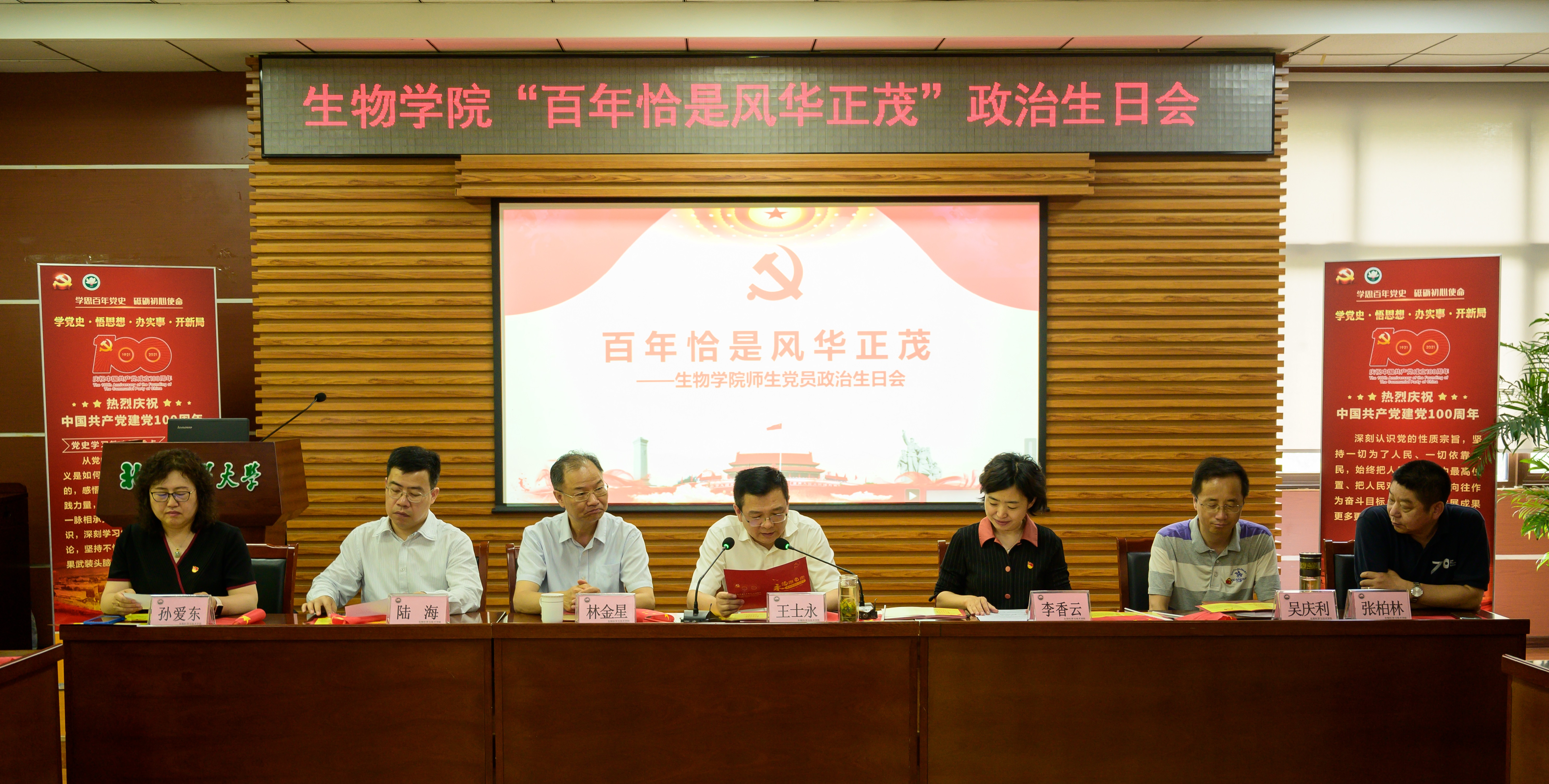 6月28日,生物学院组织师生党员同过“百年恰是风华正茂”主题政治生日会,喜迎建党百年。全体党委委员出席,相关统战人士受邀列席,师生党员代表共同参与。
