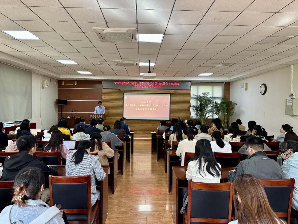 4月26日,生物科学与技术学院召开学习贯彻习近平新时代中国特色社会主义思想主题教育动员大会暨专题读书班开班仪式,学院党委书记作动员讲话,党委副书记主持开班仪式。学院党委委员、班子成员、各师生党支部书记、支部委员、党员代表、团委辅导员等参加会议。