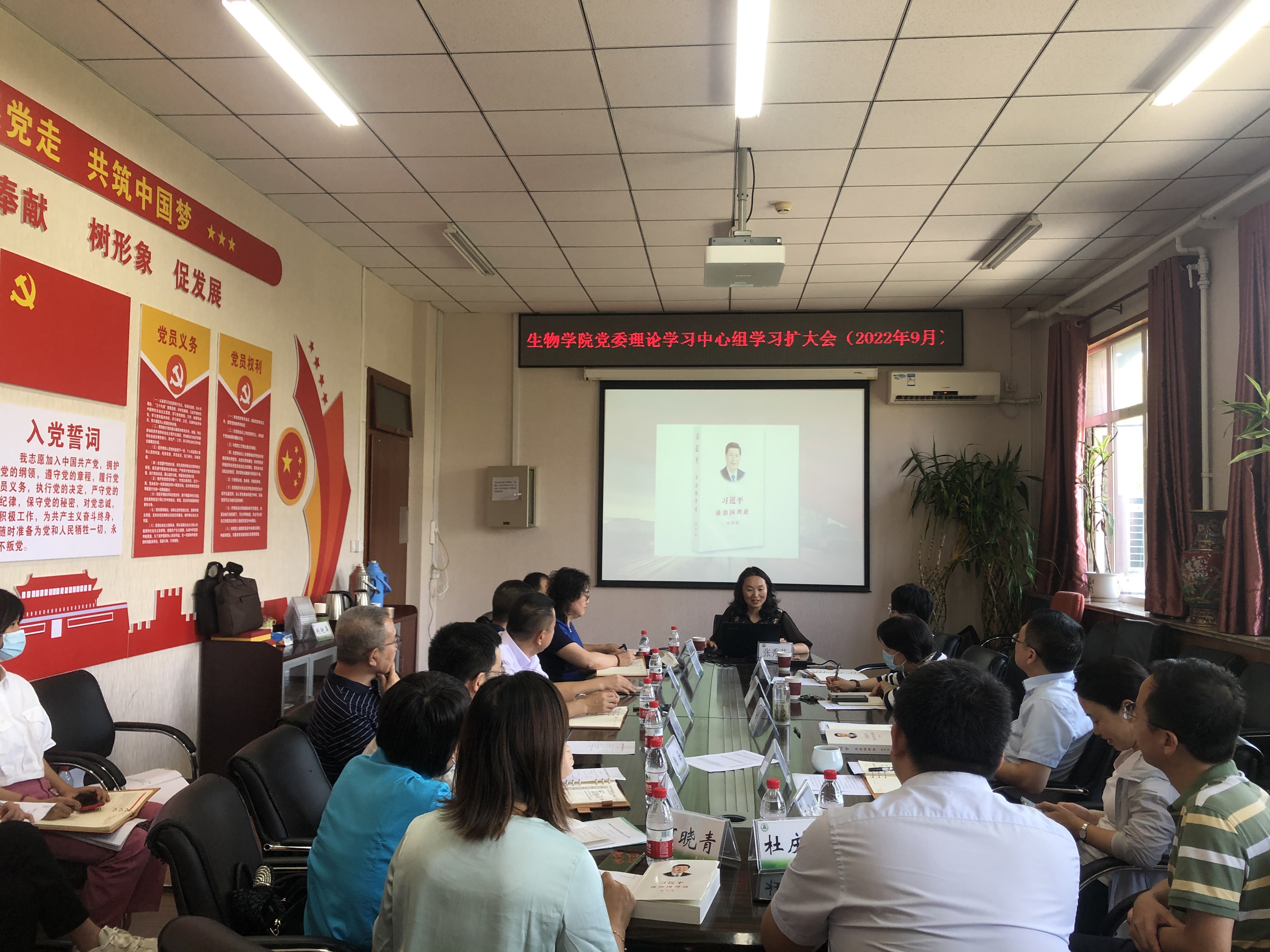 近日,生物学院党委理论学习中心组召开扩大学习会,专题联学《习近平谈治国理政》(第四卷)有关内容。学习会特邀马克思主义学院教师张秀芹教授做专题学习辅导报告,中心组成员围绕凝聚思想谋发展、统筹疫情防控与人才培养、加强学院教师人才队伍建设、传承校院优良学术文化更好服务国之大者等方面进行交流研讨。