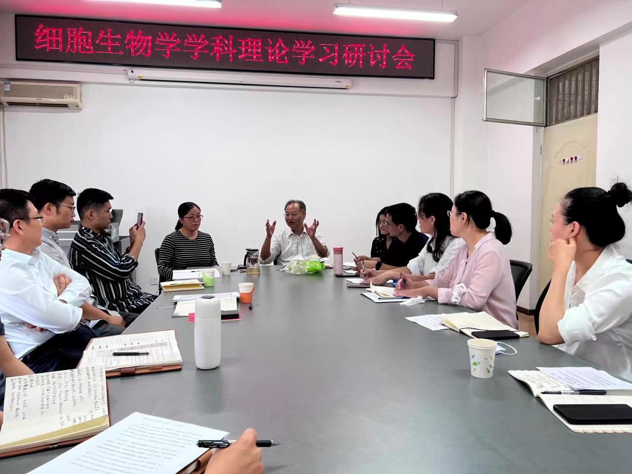 近日,细胞学科教工党支部组织开展“喜迎二十大,奋进新征程”主题党日活动,支部、学科、教研室三级联动,全体党员、学科教师共同出席,专题学习《习近平谈治国理政》第四卷有关内容和习近平总书记对北京师范大学“优师计划”师范生回信内容,并对暑期教师研修活动进行交流。学院党委书记王士永,团委书记焦隆等列席主题党日学习活动。