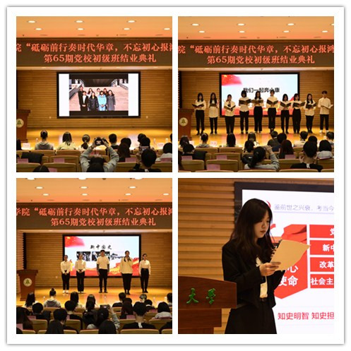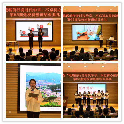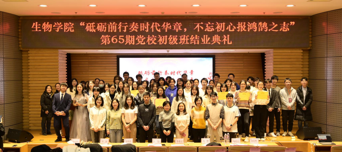 12月6日,生物学院举办“砥砺前行奏时代华章,不忘初心报鸿鹄之志”第65期党校初级班结业典礼。生物学院党委副书记、副院长李香云,团委副书记连鹏,团委胡庆、卜郁、李佳璟、陶培元、郭明嘉、刘源、曹丽莎,第65期初级班全体学员出席典礼。